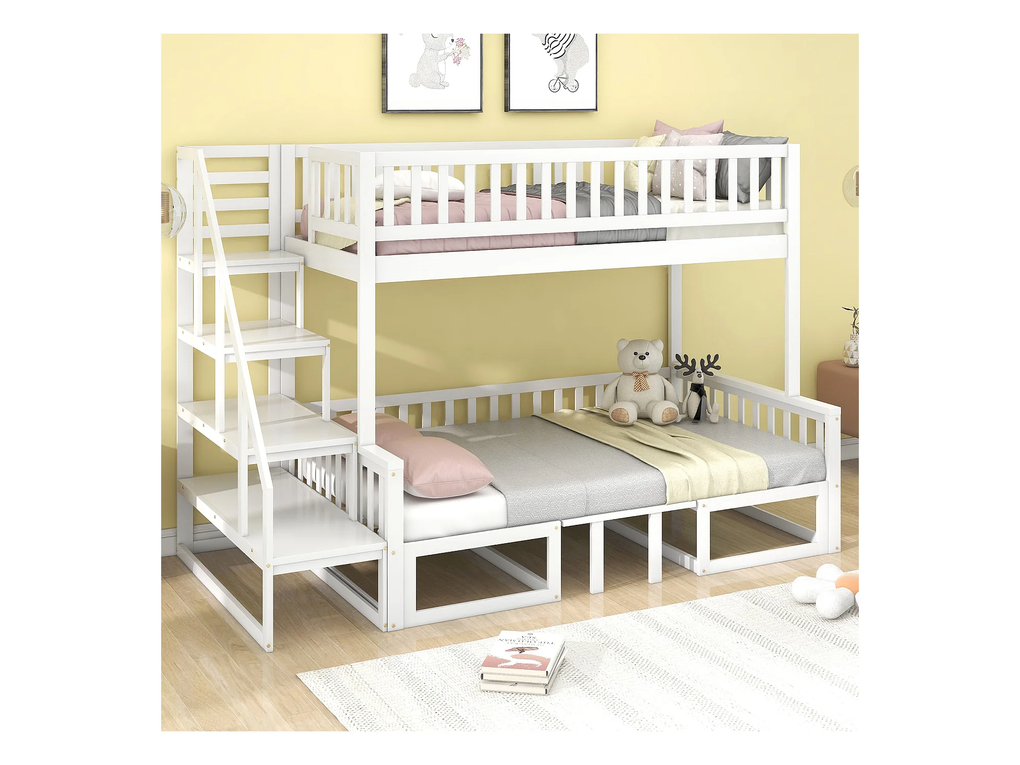 Litera de madera con 3 escaleras y somier de láminas, cama infantil de 90 x 200 cm, color blanco