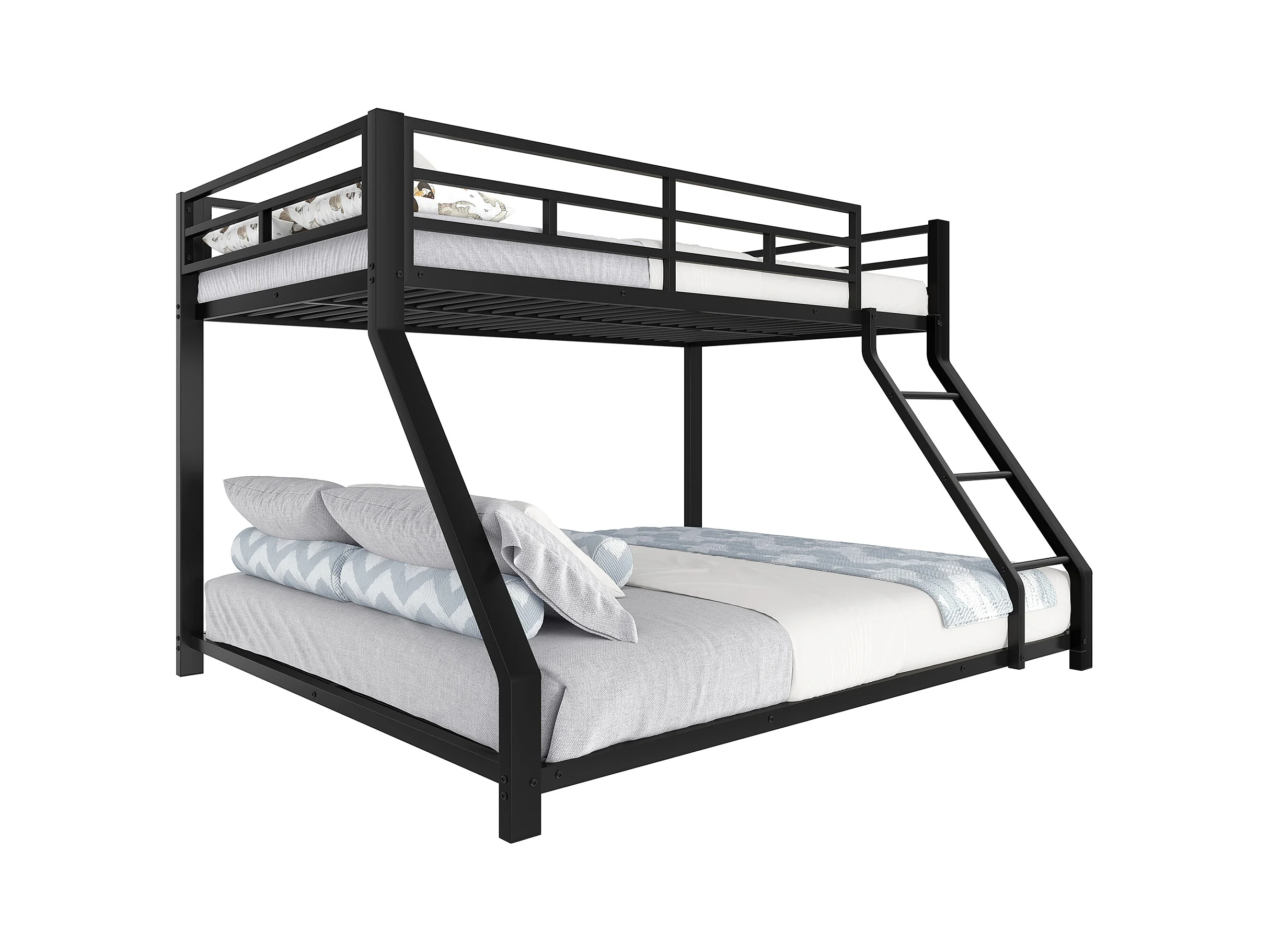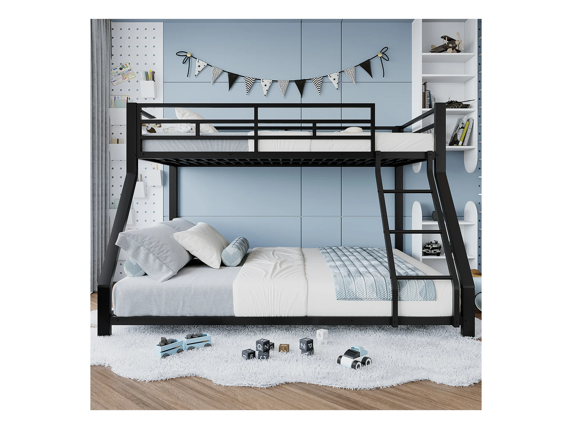 Litera infantil - 90 x 200 cm + 140 x 200 cm - con barandilla + piecero - metal - negro