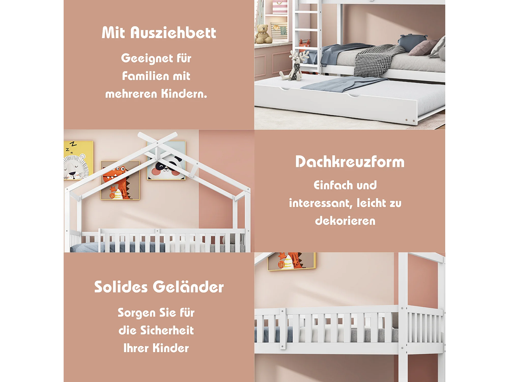 Litera infantil 90x200 cm en madera maciza blanca, cama extensible y modular