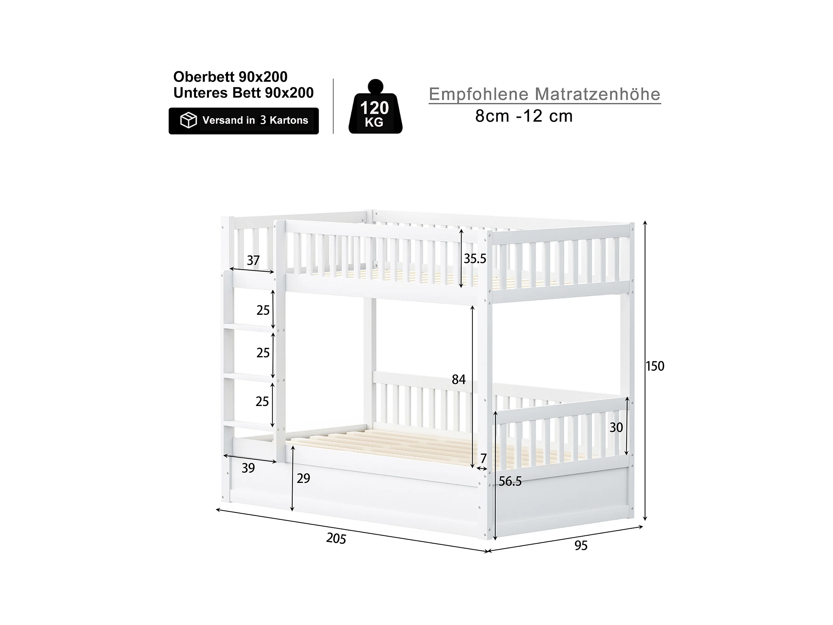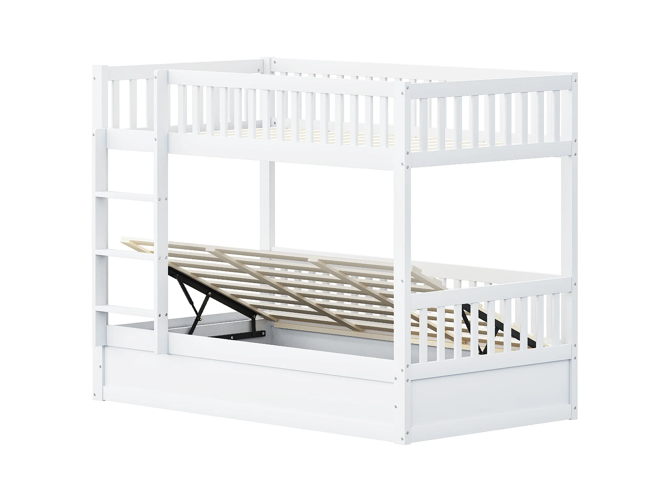 Litera infantil 90x200cm, blanca, con almacenaje hidráulico, estructura de cama incluida (sin colchón)