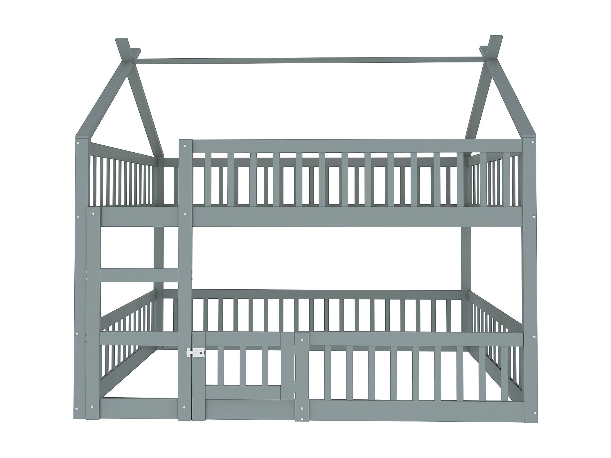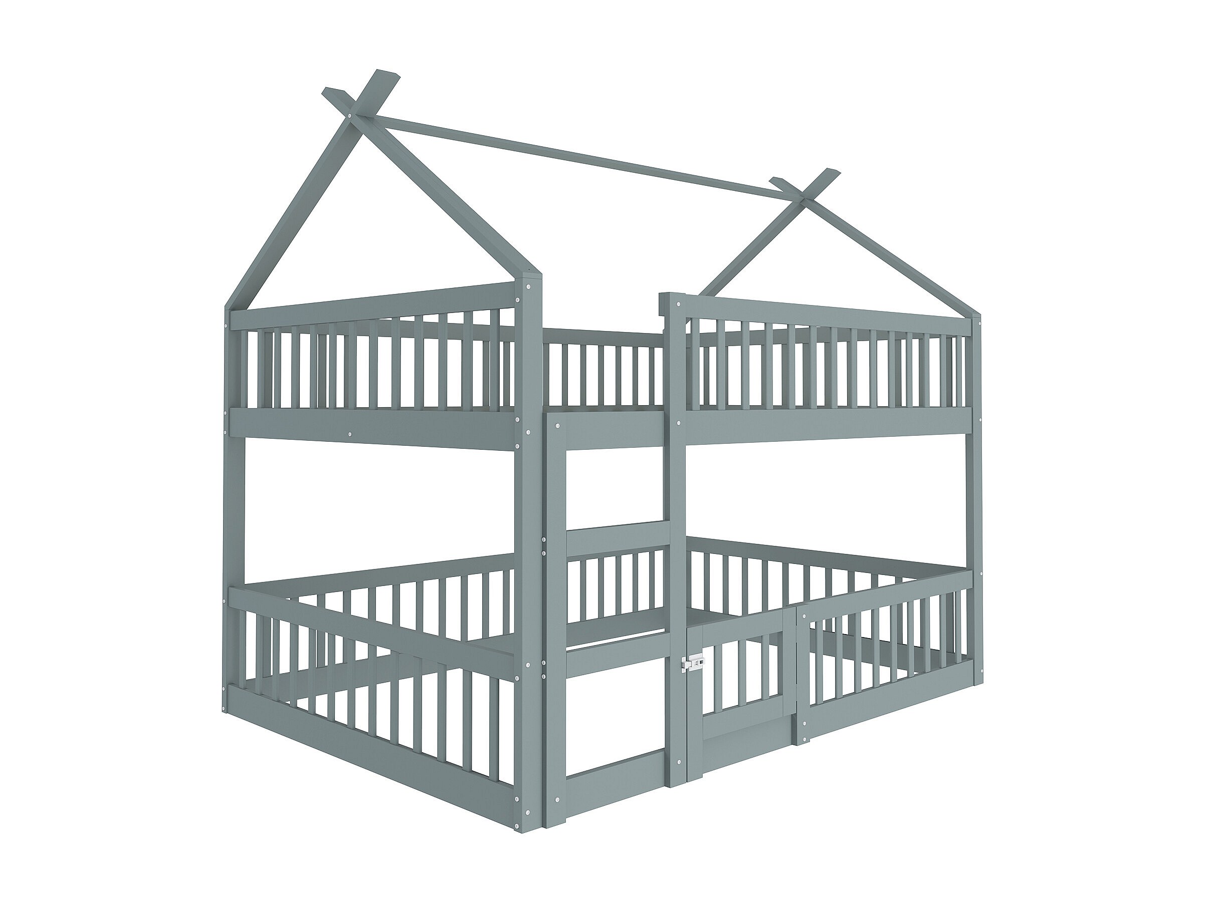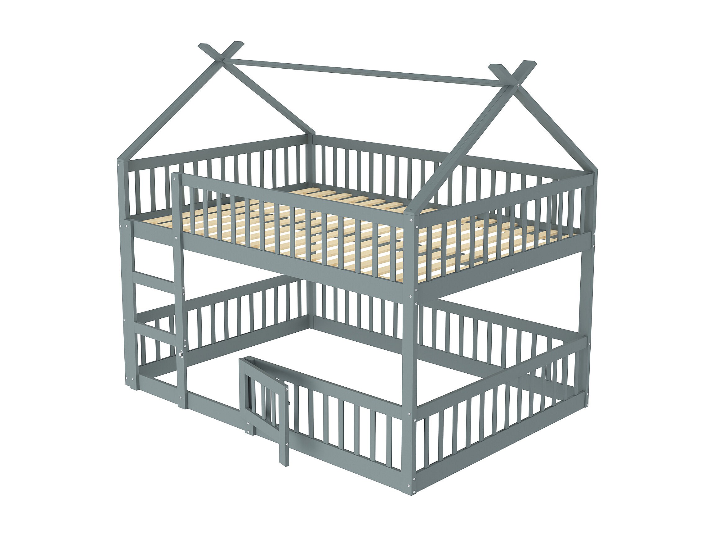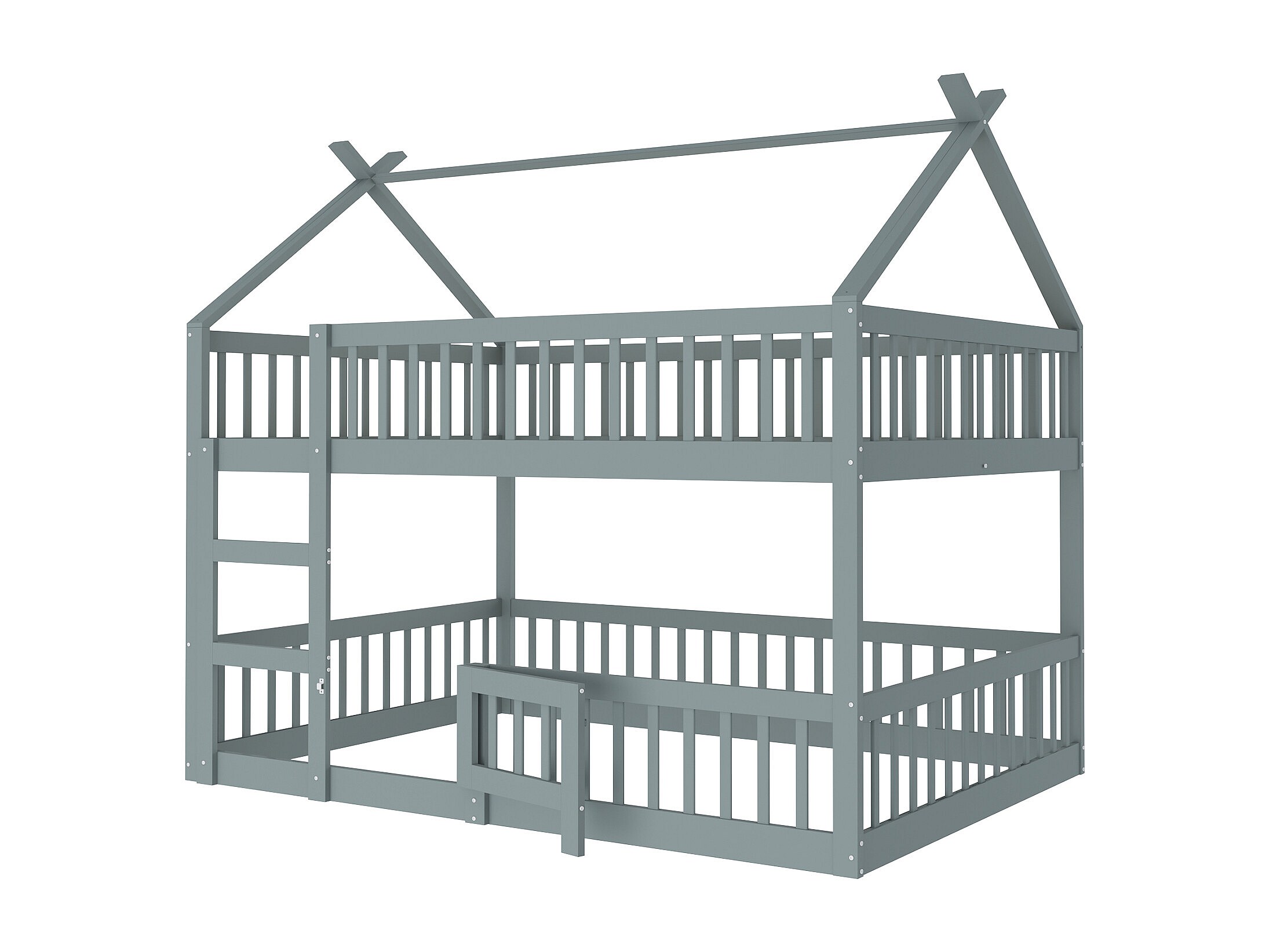 Litera infantil de 140 x 200 cm, cama familiar infantil con escalera, estructura de madera maciza, color gris