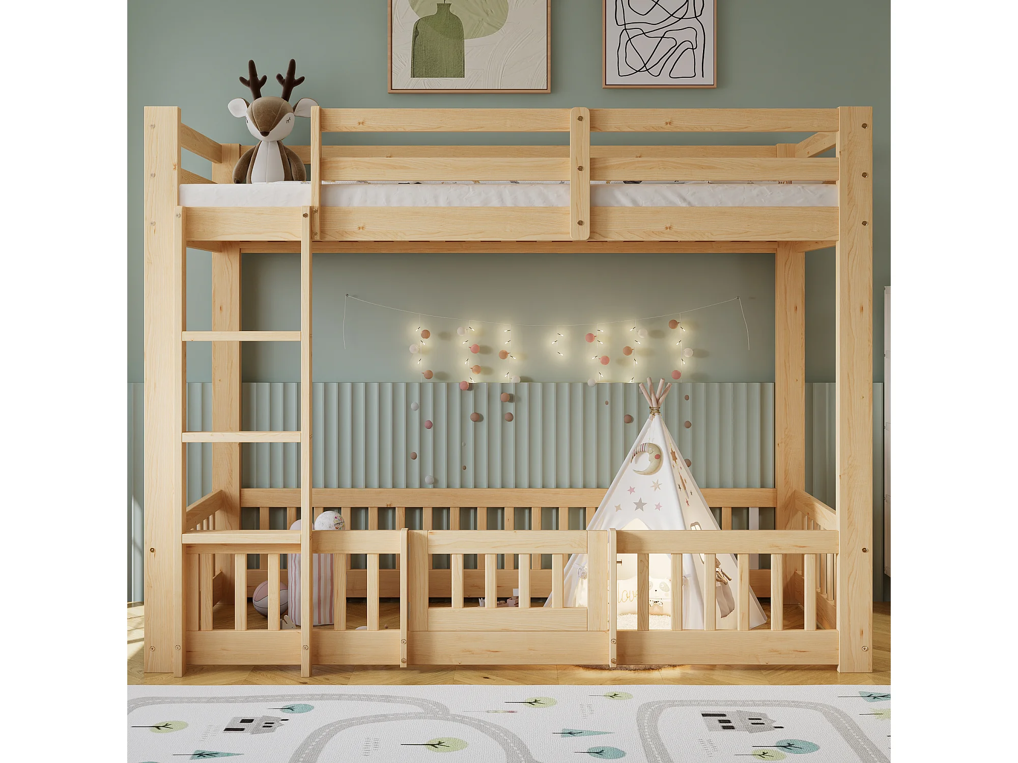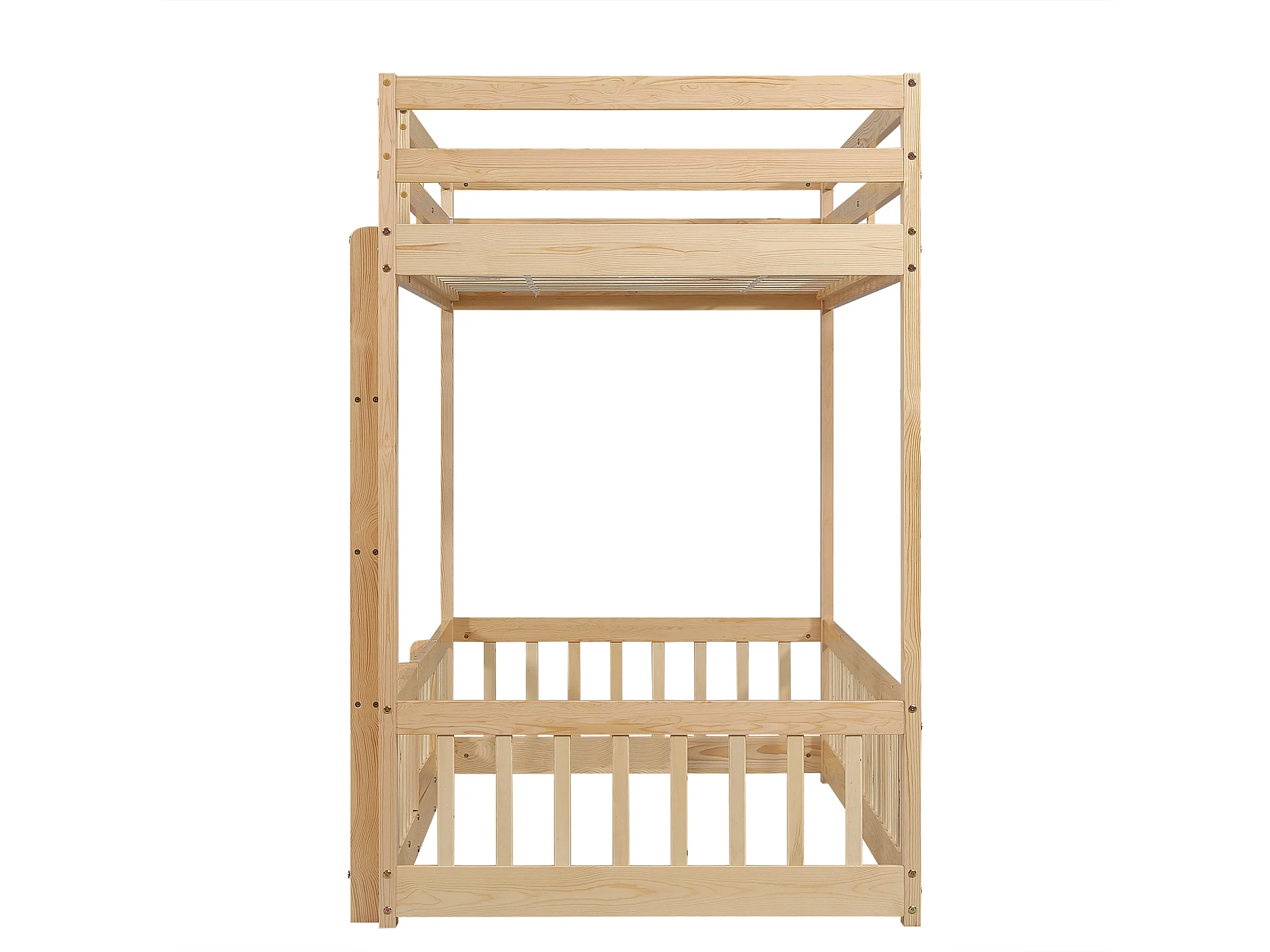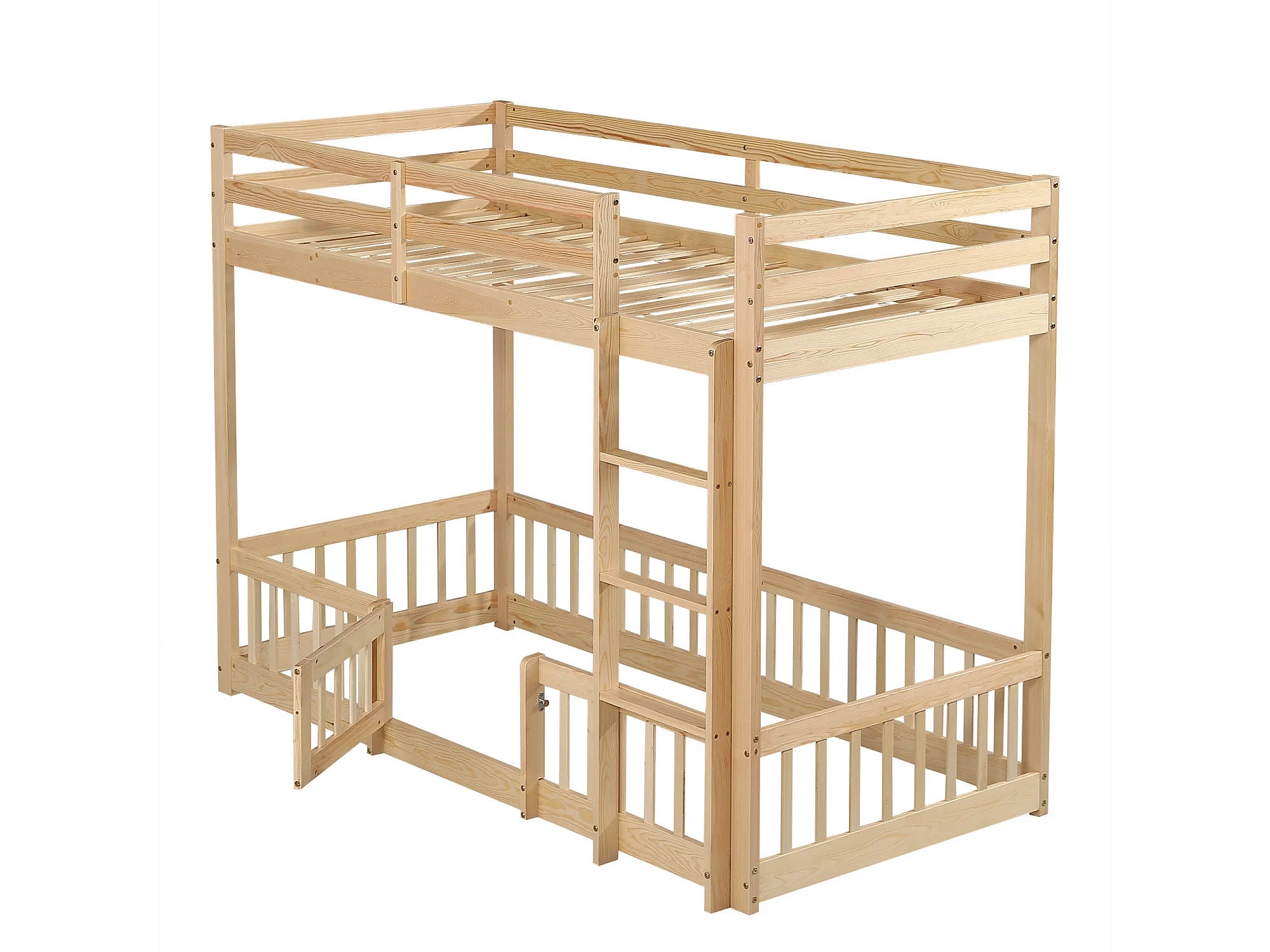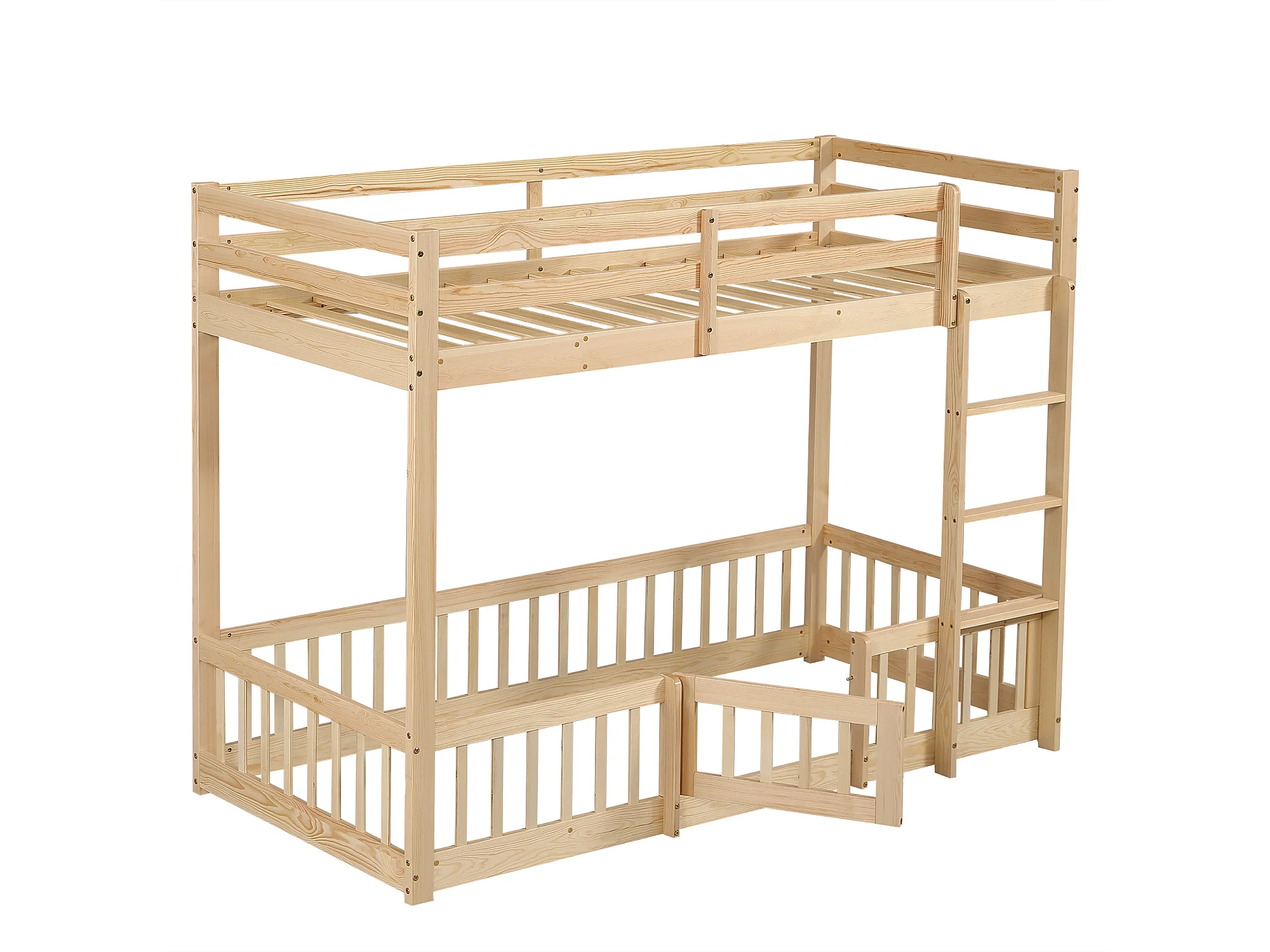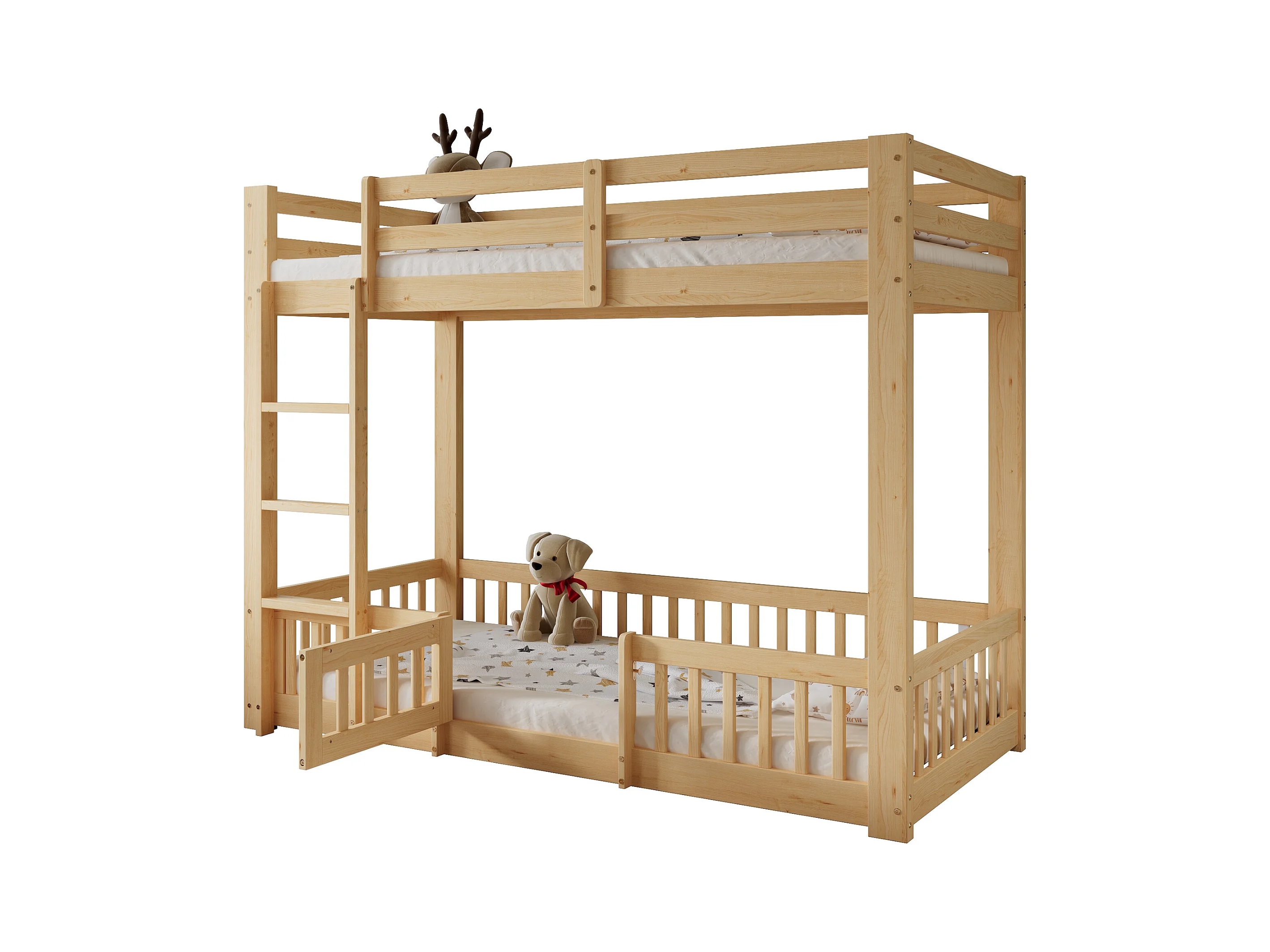 Litera infantil en color natural claro de 90x200cm con escalera en ángulo recto, barandilla, madera de pino + LVL (sin colchón)