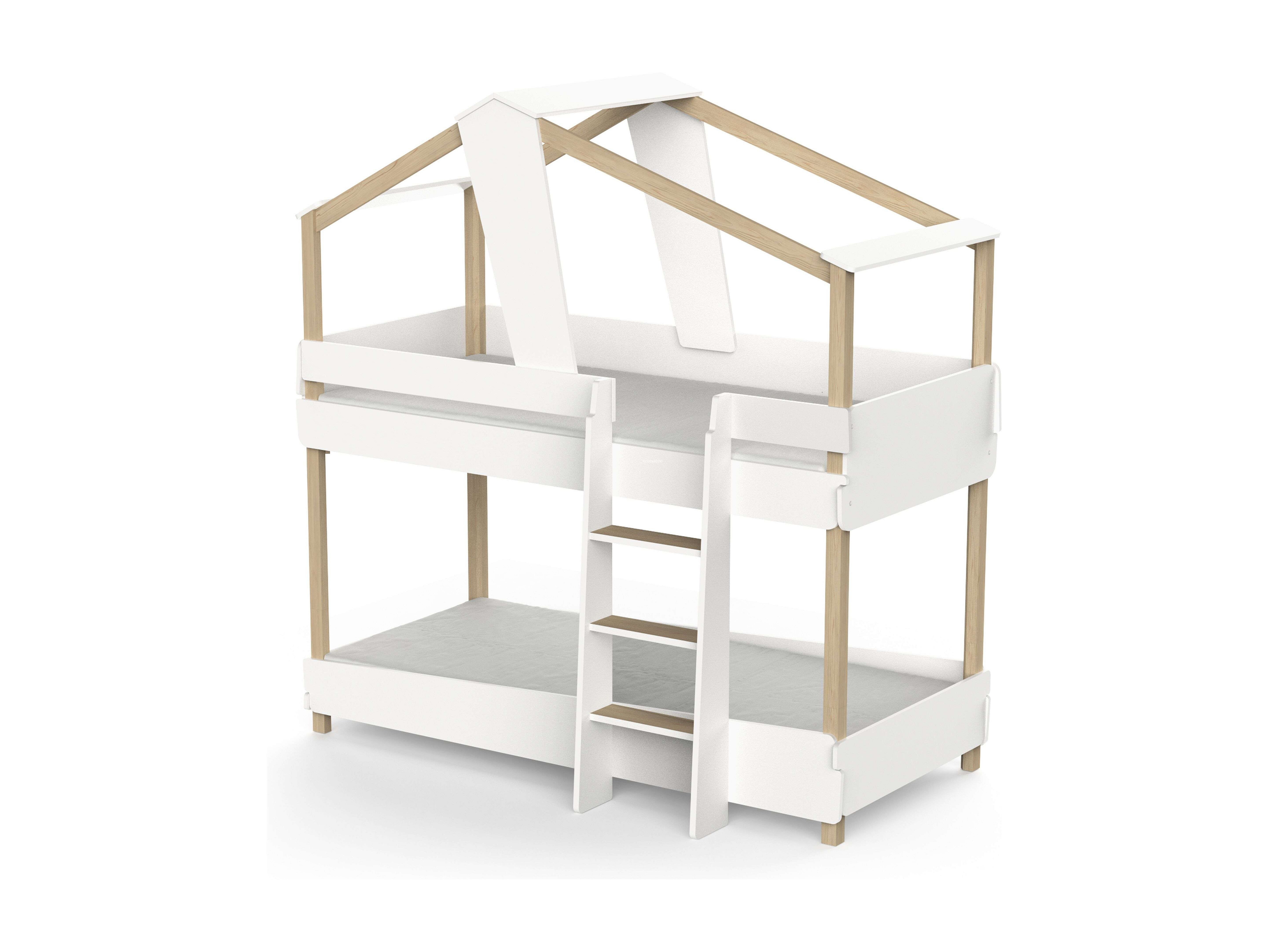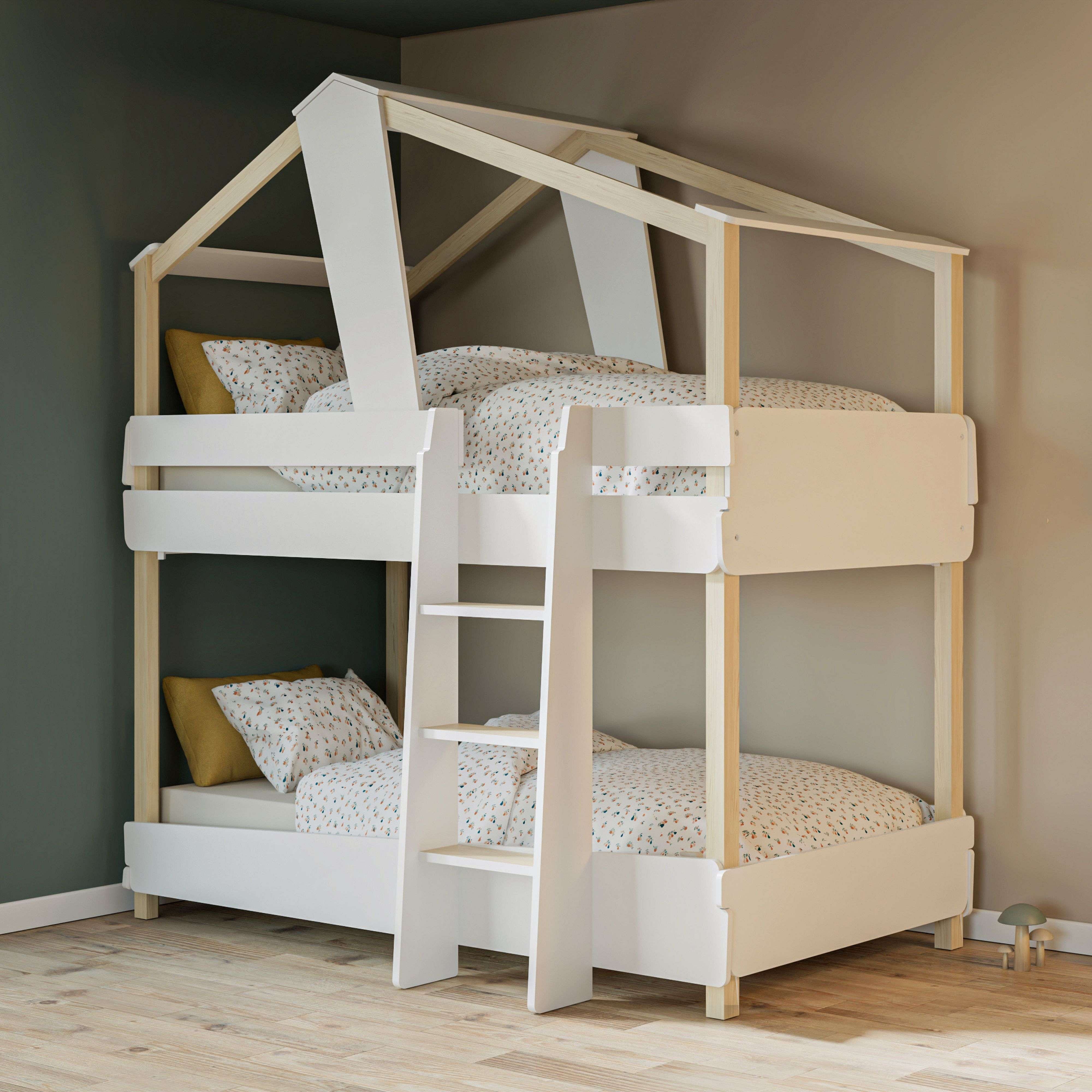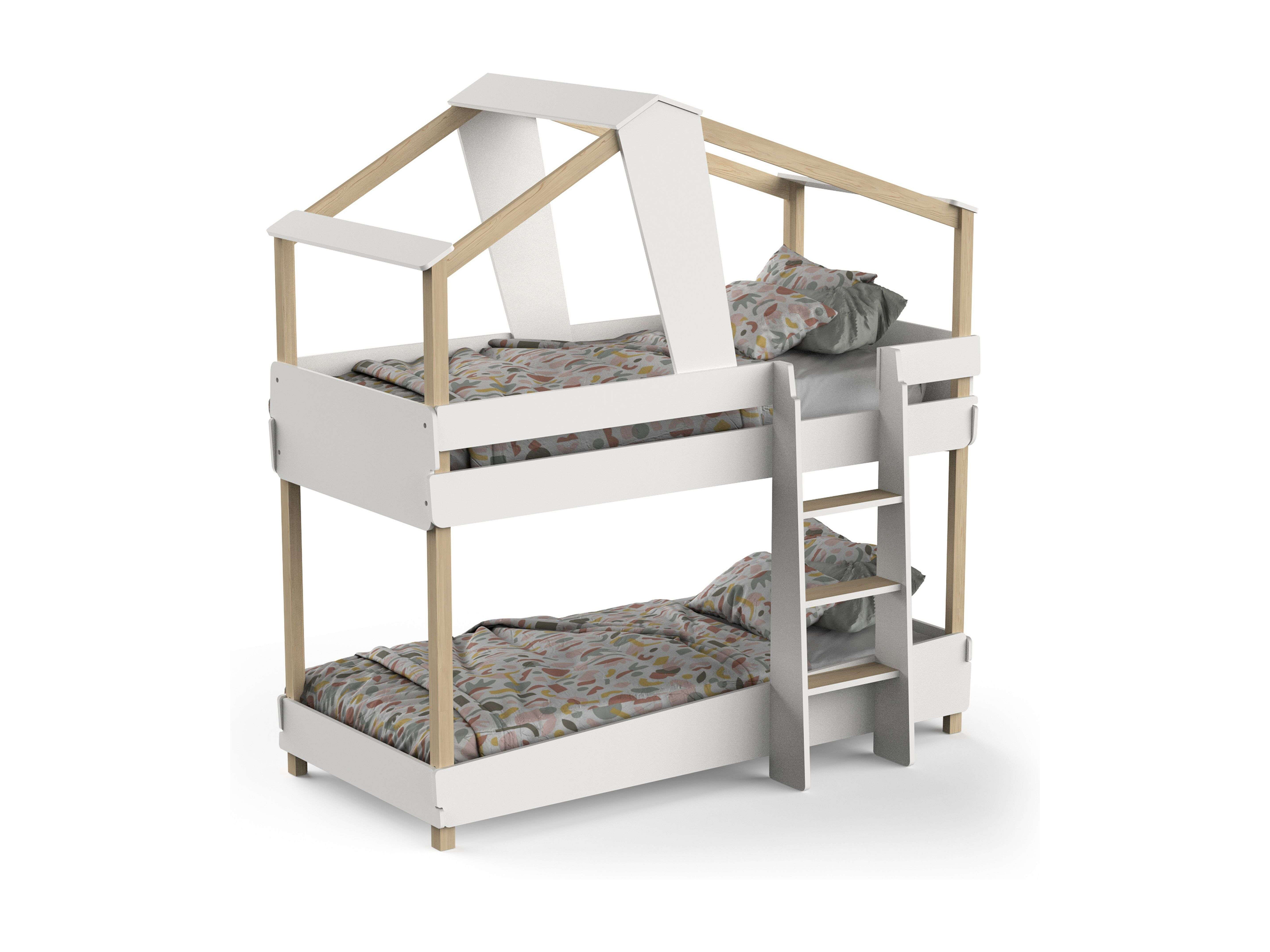 Litera Juvenil Infantil 90x190 cm Timber Blanco Mate y Beige Cabaña