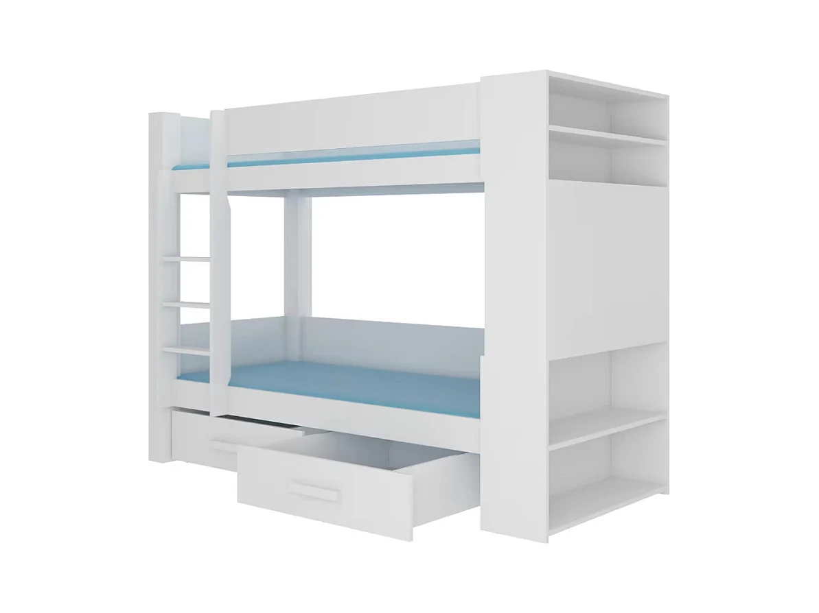 Litera MILA para 2 personas 90x200 cm - Estanterías, cajones y 2 somieres-Color Blanco