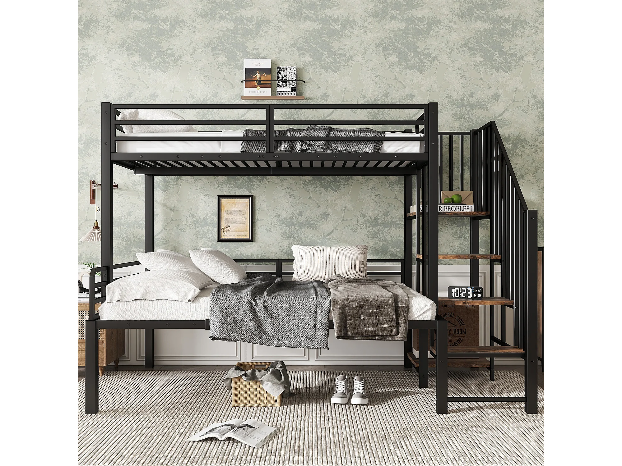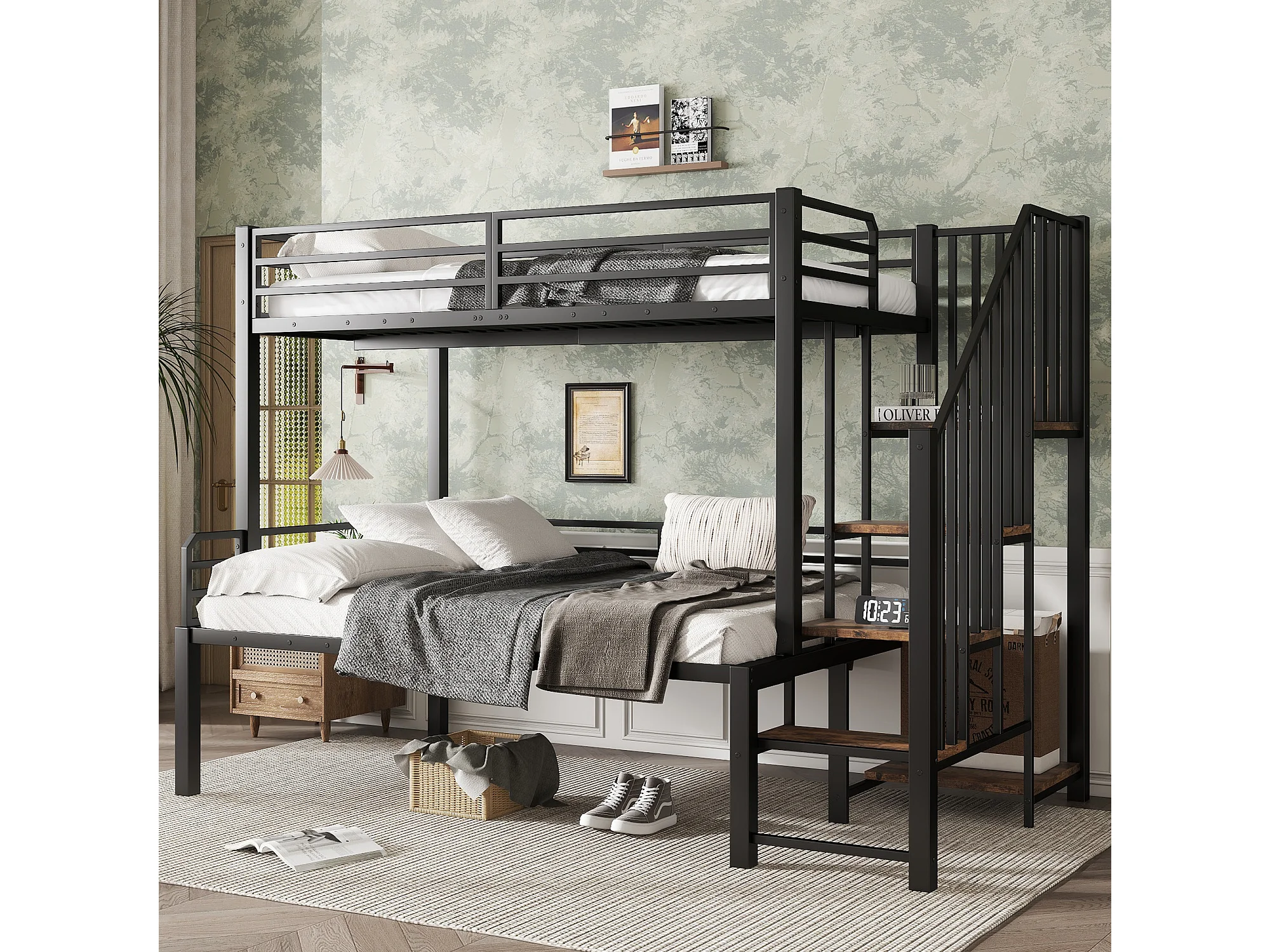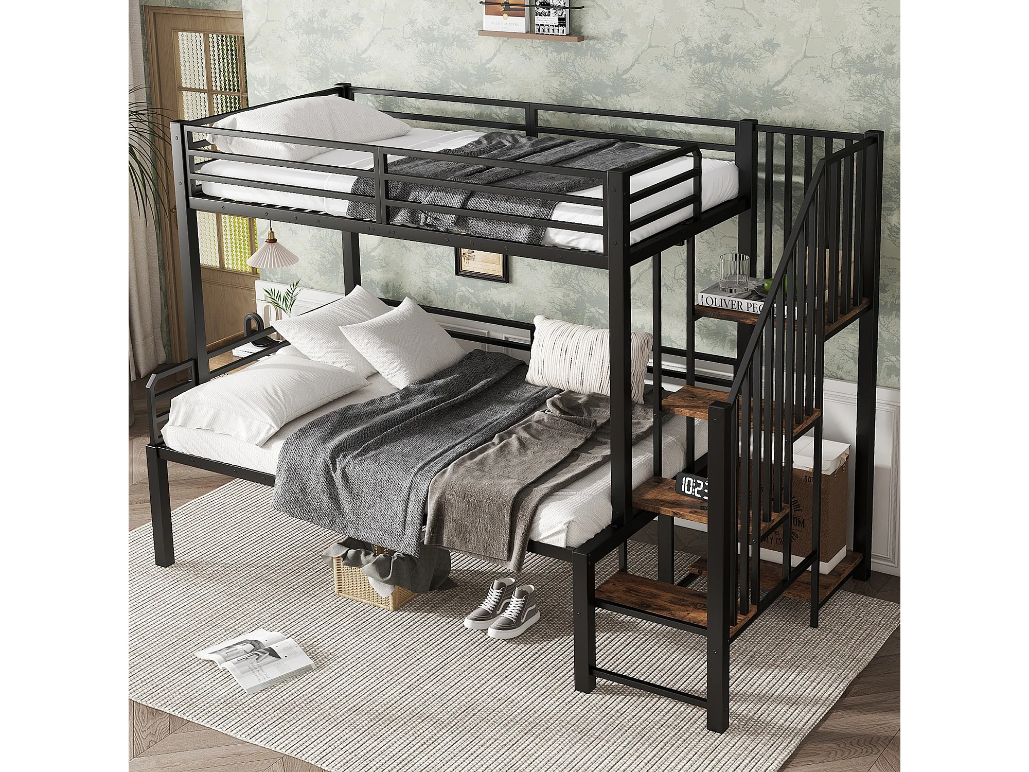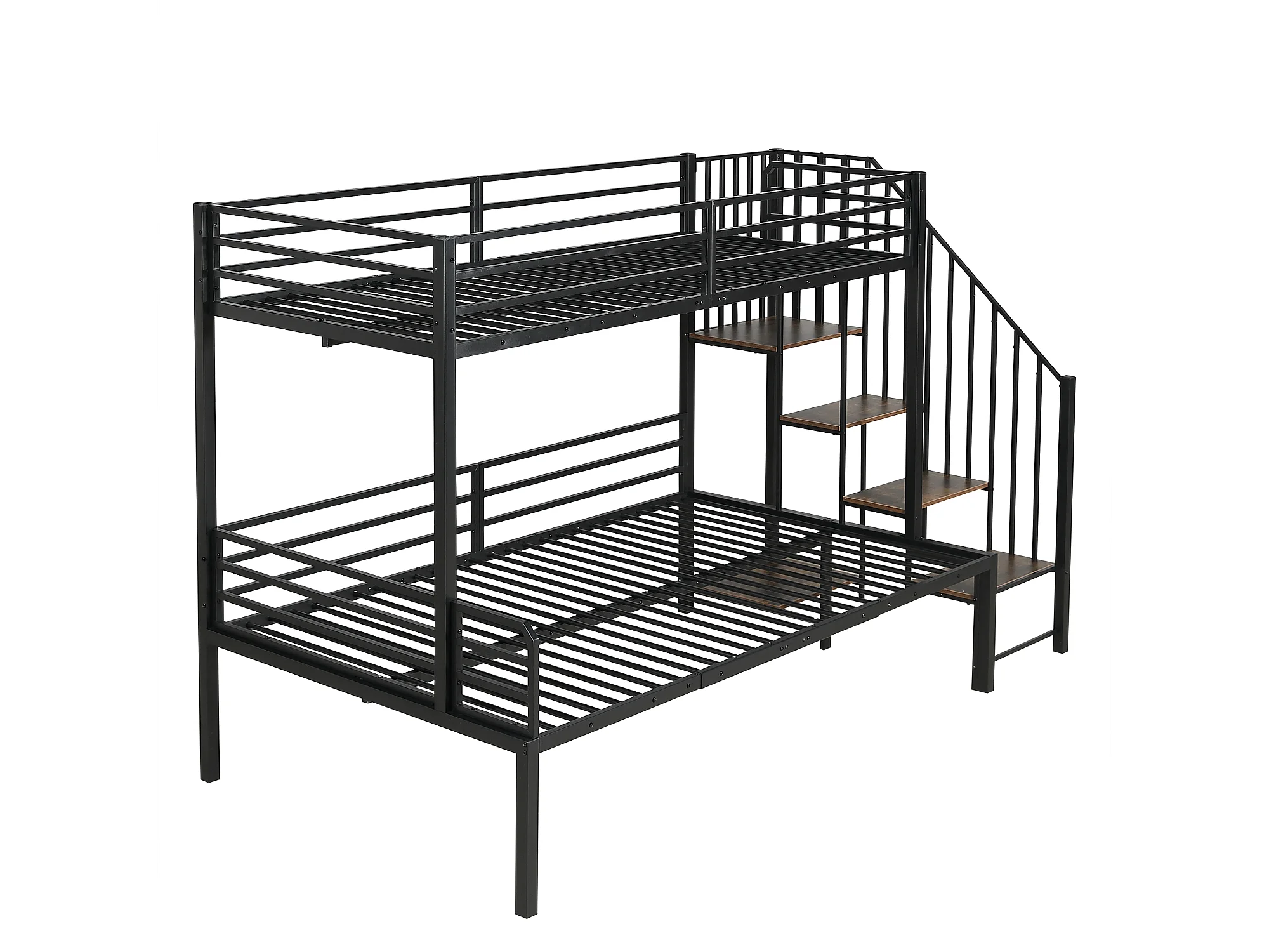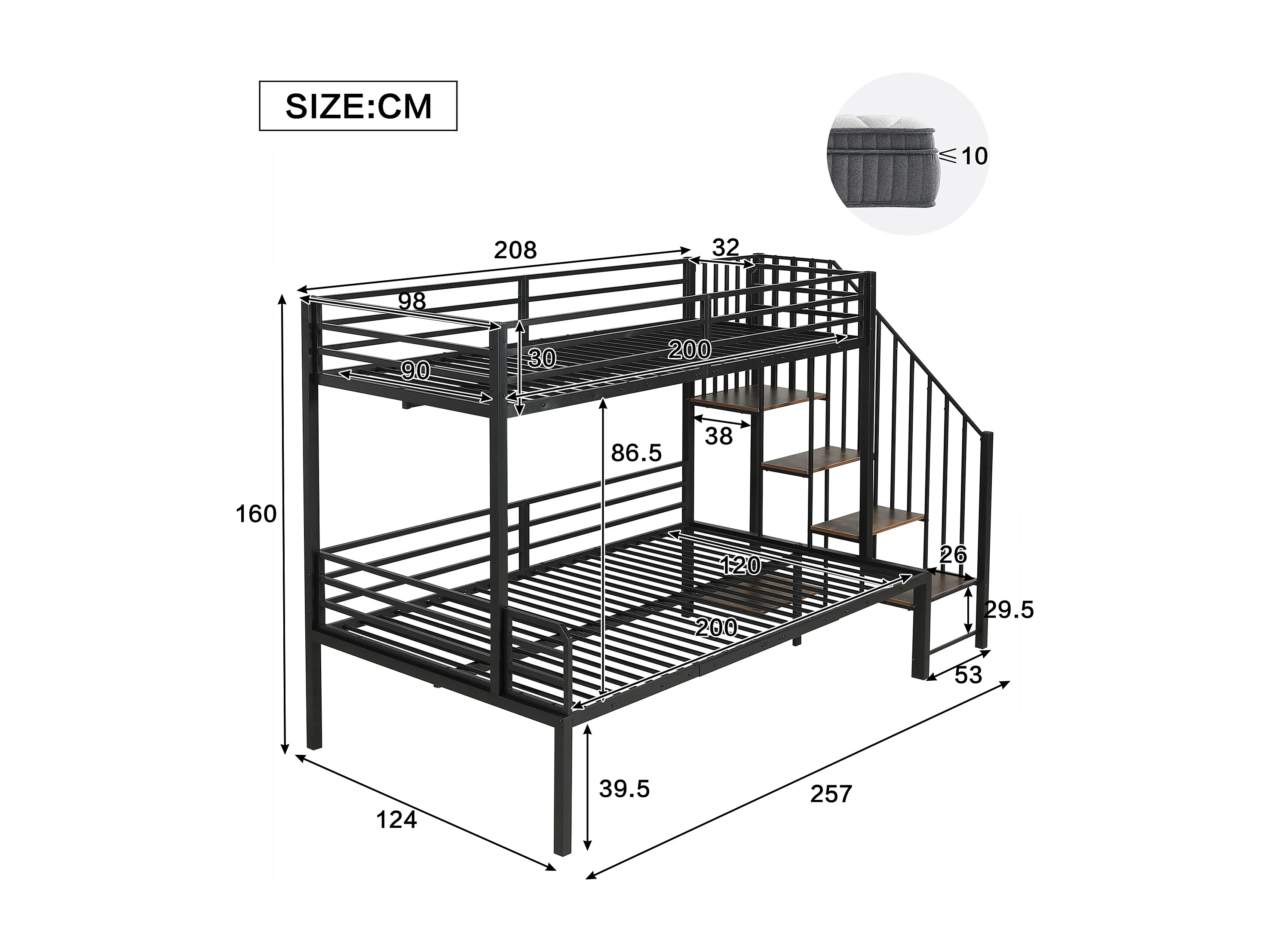 Litera para niños, hierro + tablero de fibra de densidad media, negro + color madera vintage, 90 x 200 cm y 120 x 200 cm