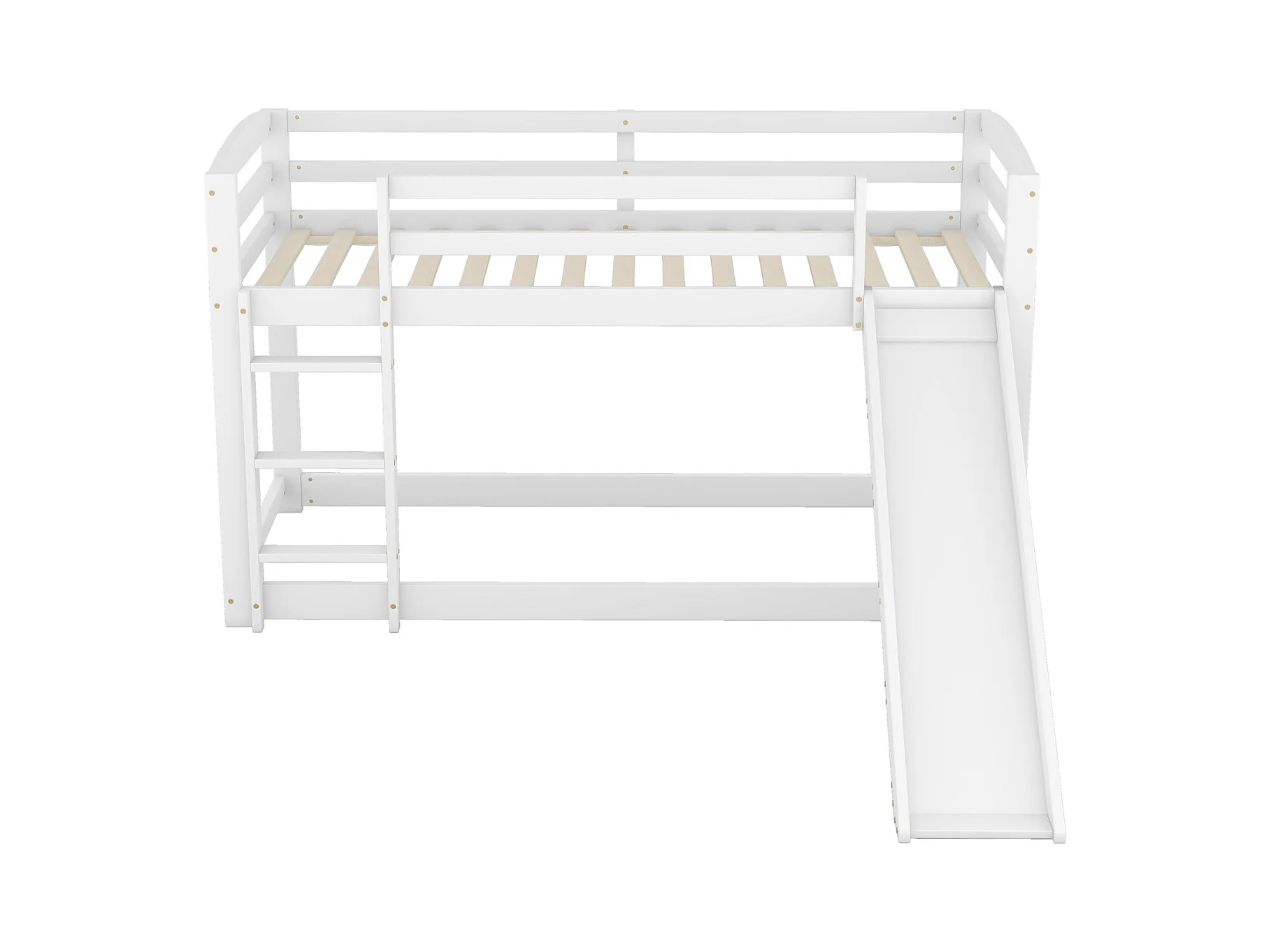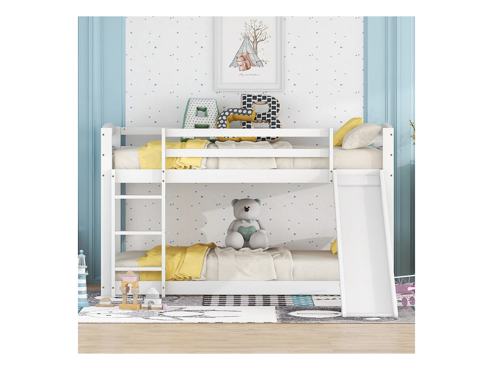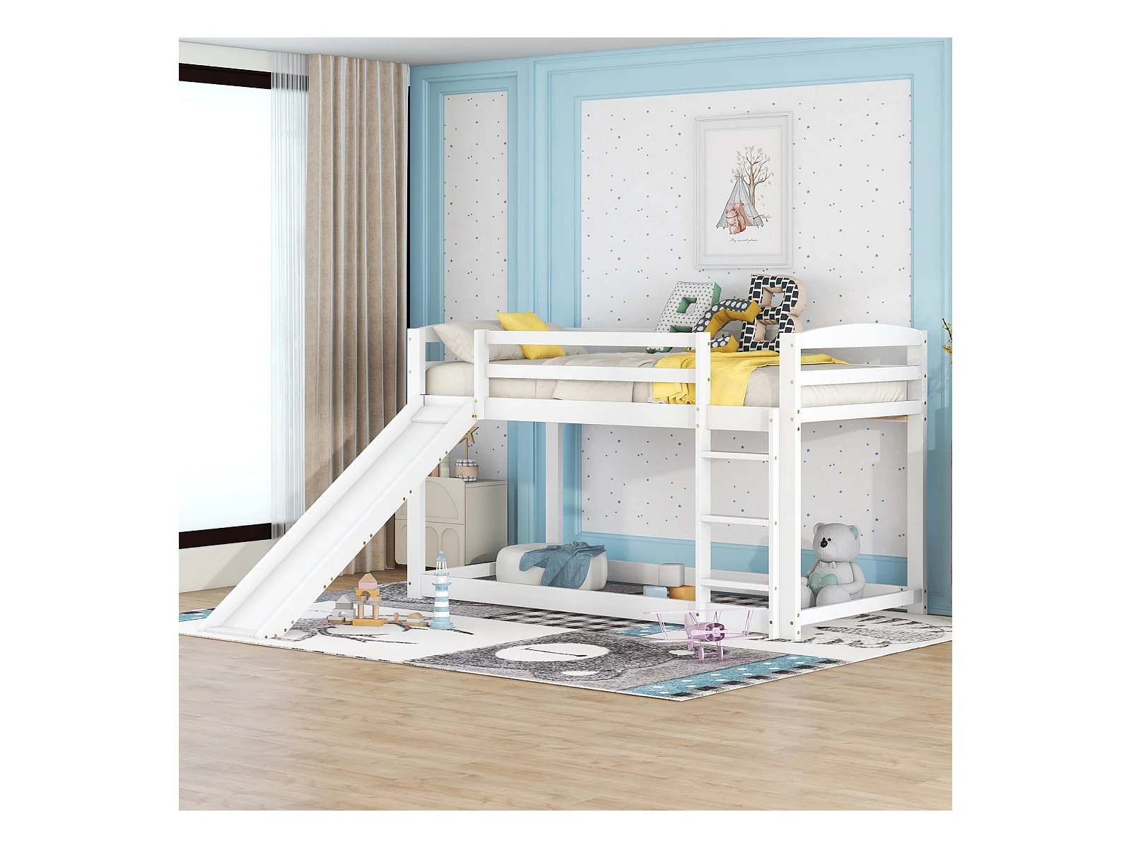 Litera para niños y adolescentes con tobogán - Estructura de madera maciza blanca, fácil montaje, 90x200 cm