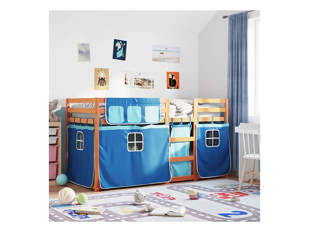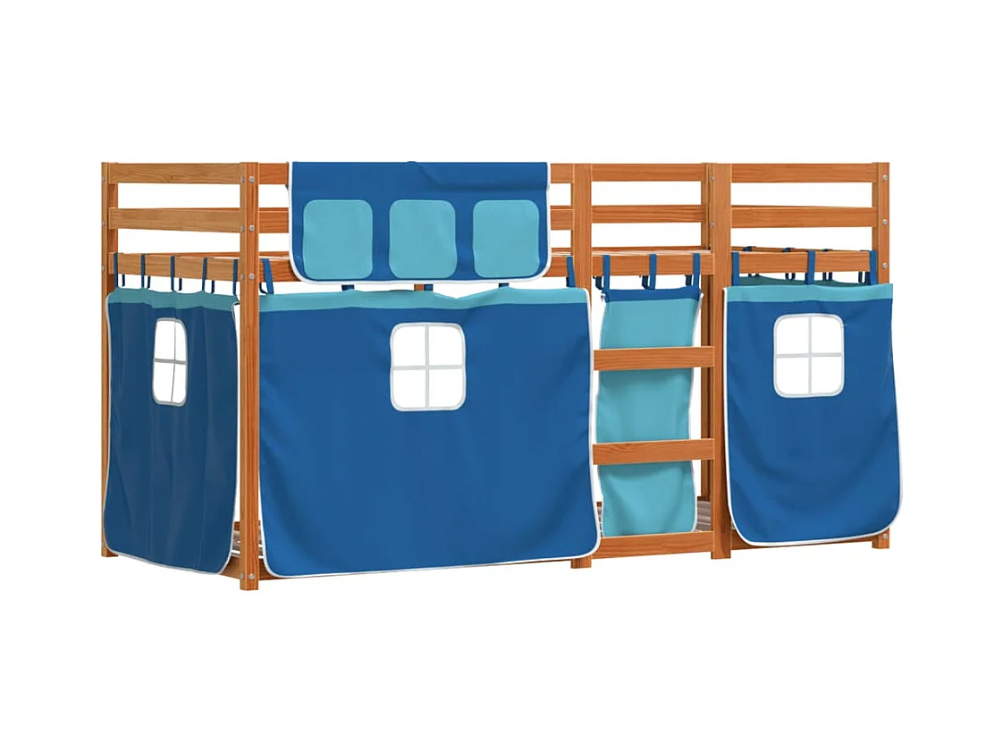 Cama alta infantil con cortinas sin colchón azul 90x190 cm