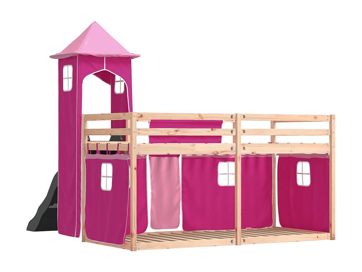 Litera sin colchón con tobogán y cortinas 80x200 cm