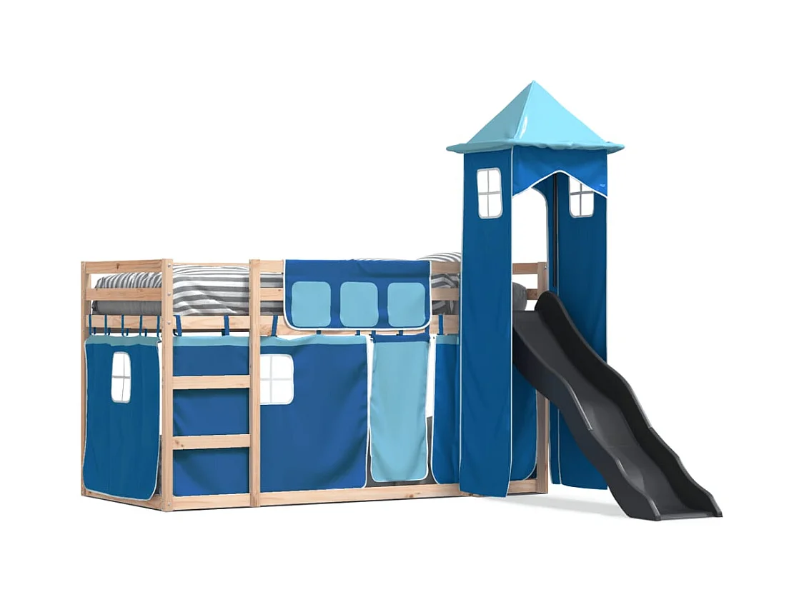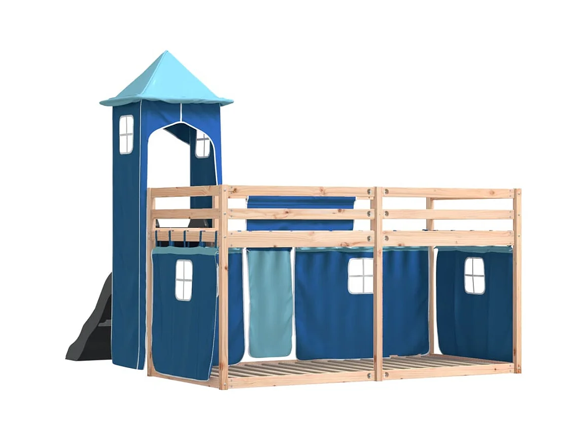 Litera sin colchón con tobogán y cortinas 90x190 cm