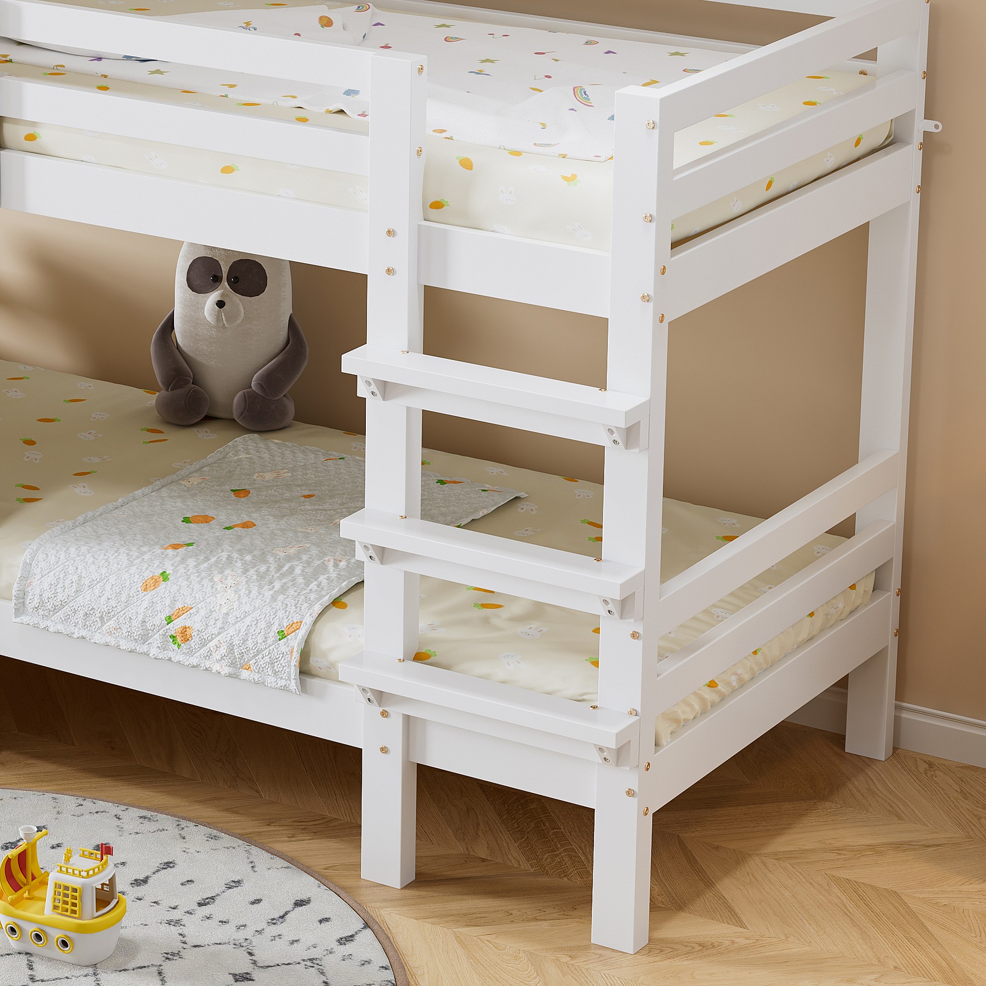 Litera de madera maciza con escalera y tobogán - 90x200 cm - Blanco -