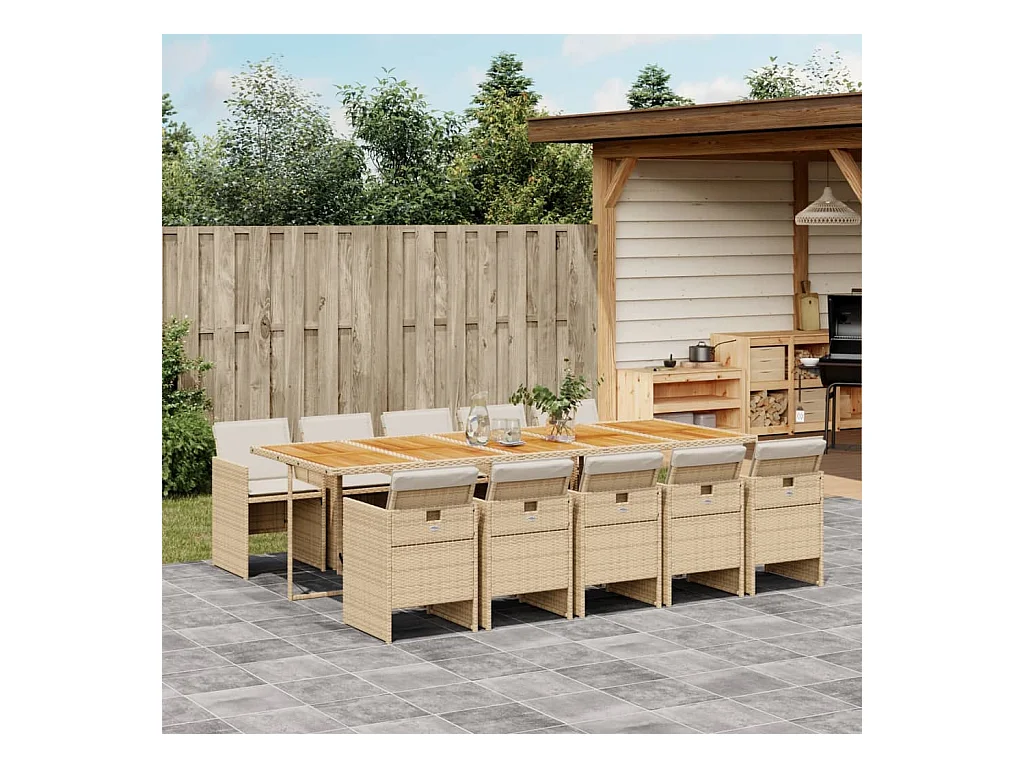 An Daingean Set comedor de jardín 11 pzas con cojines ratán sintético beige