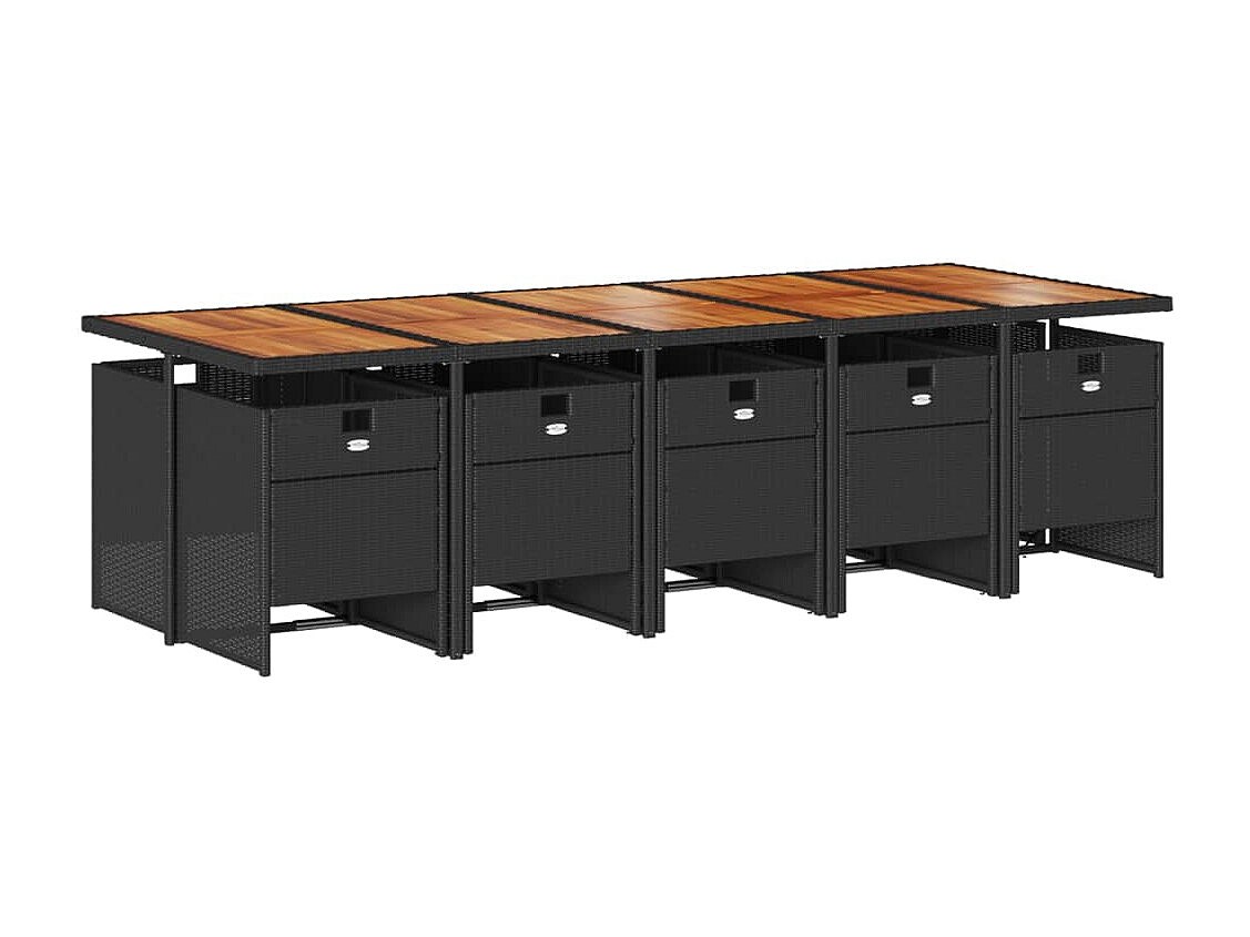 Ljungby Set de comedor jardín 11 pzas con cojines ratán sintético negro