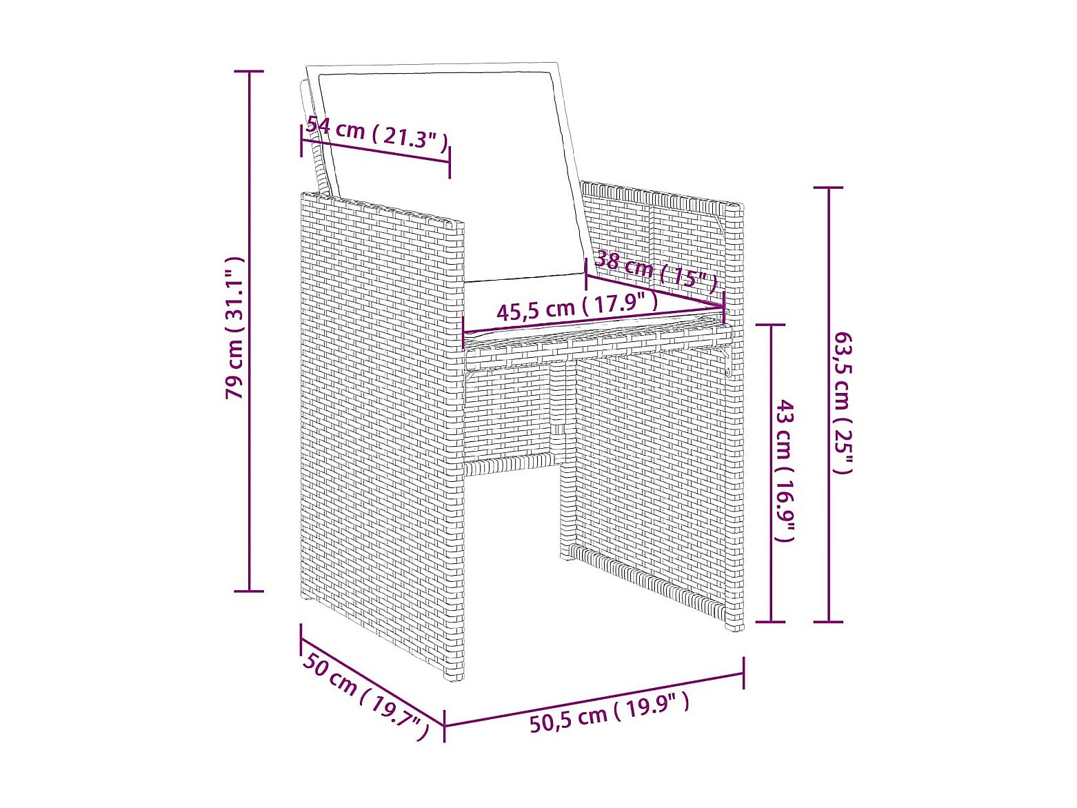 Jeroen Set comedor de jardín con cojines 15 pzas ratán sintético negro