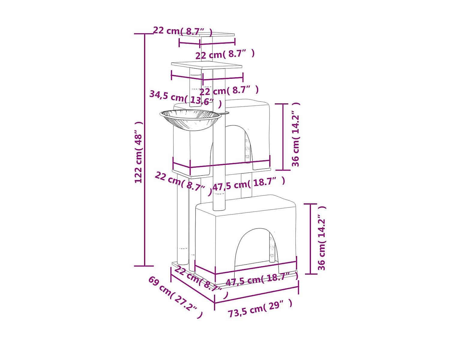 Gokberk Rascador para gatos con postes de sisal color crema 122 cm