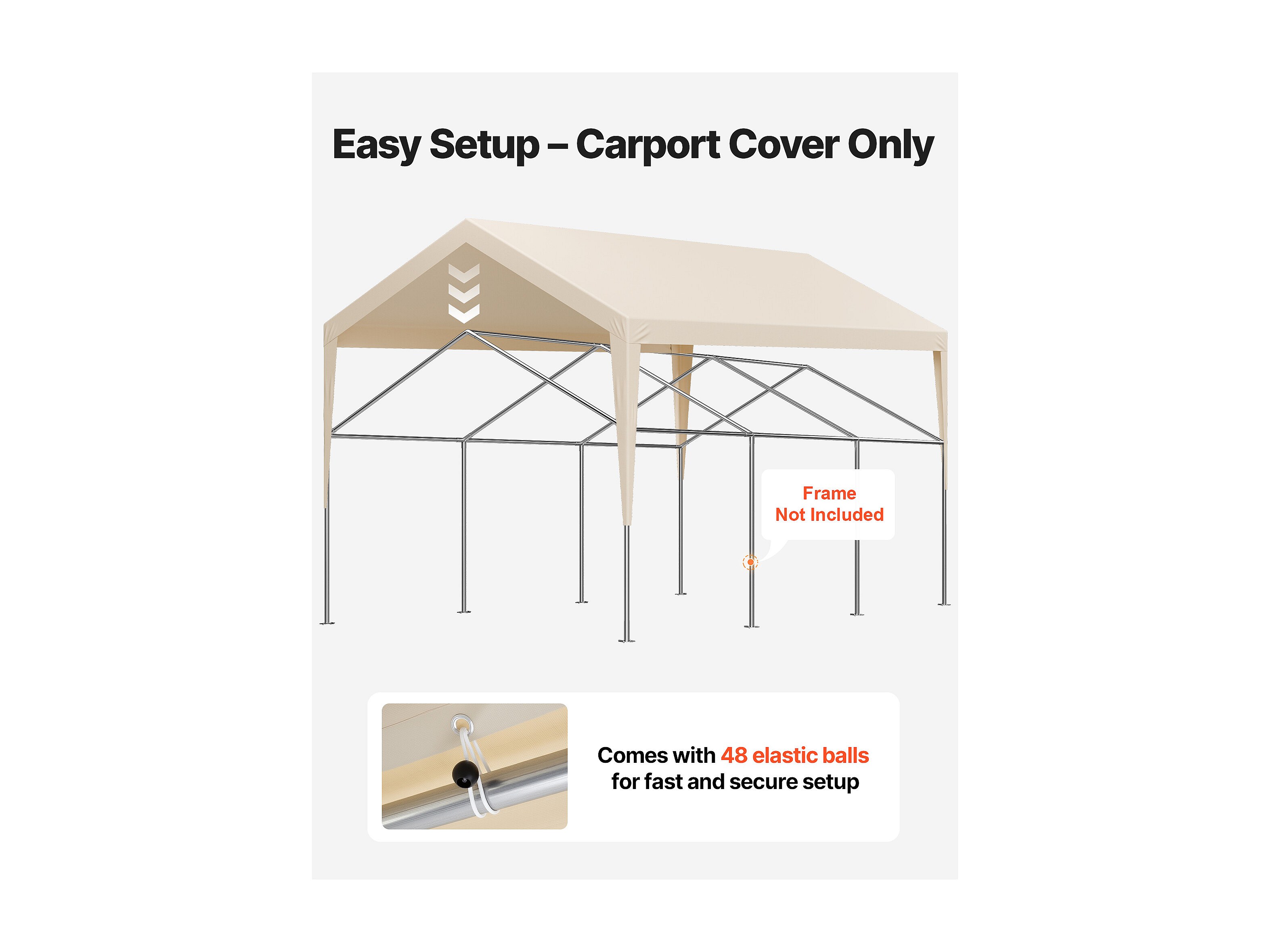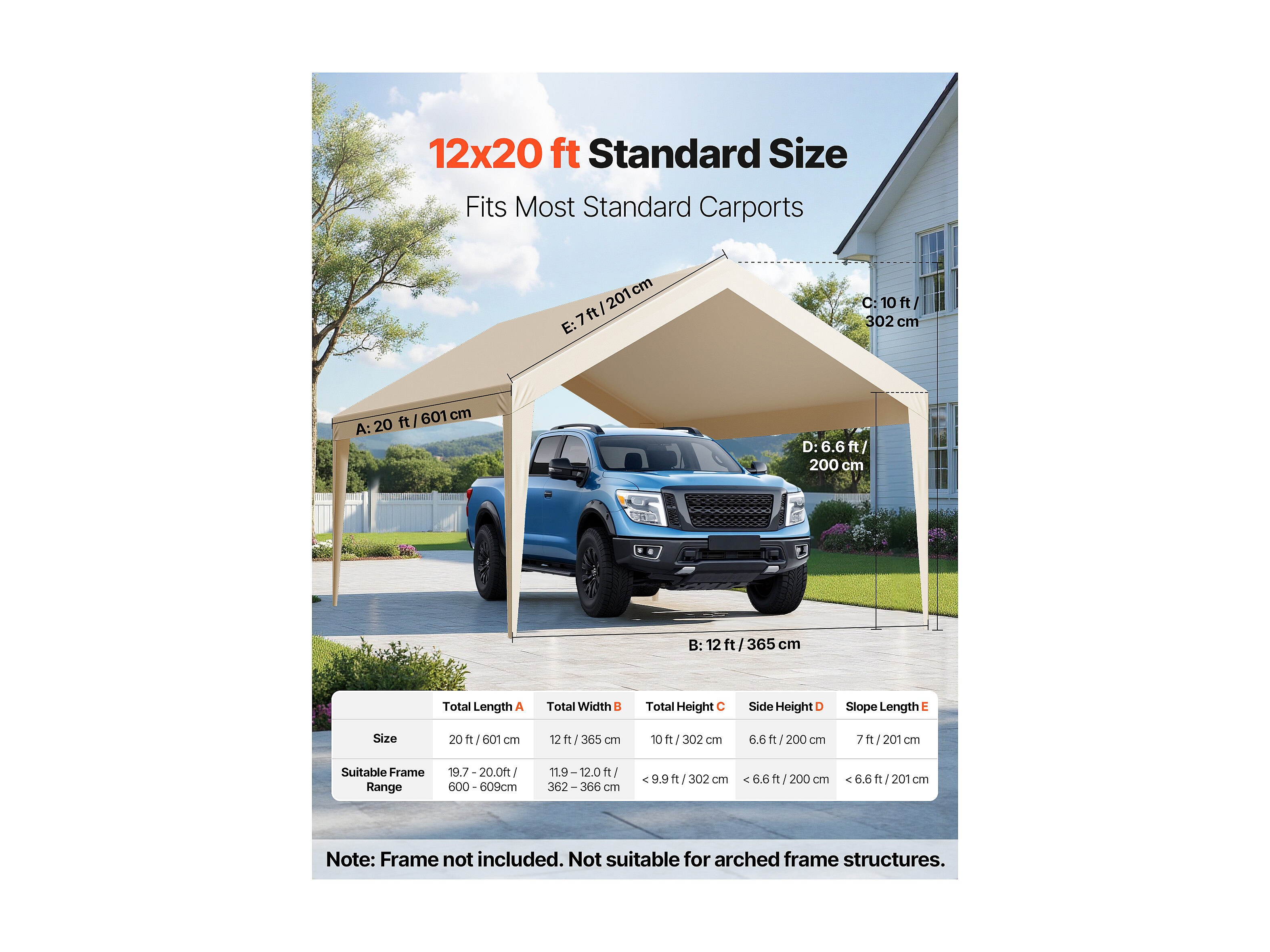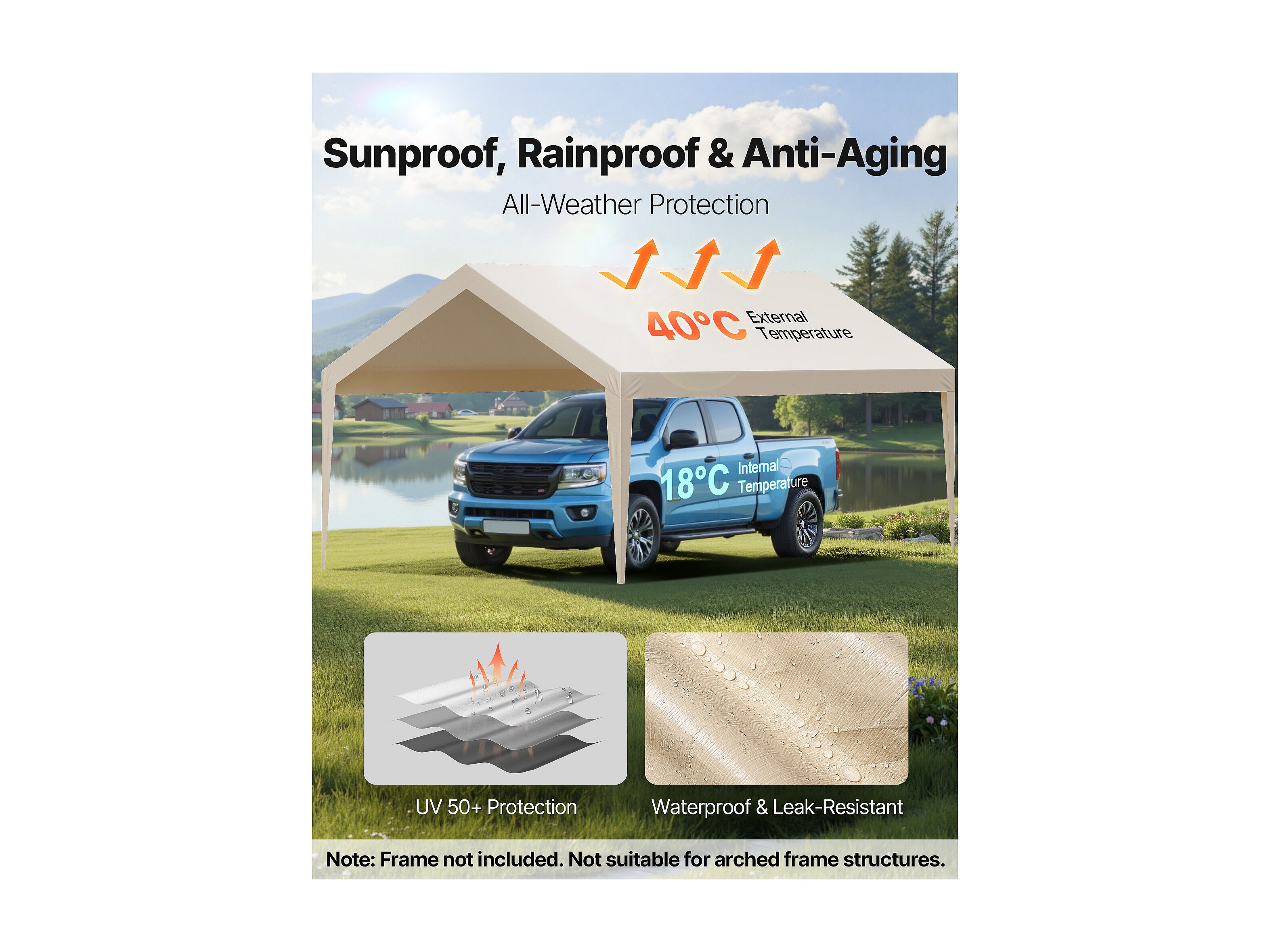 Lona de Reemplazo Cobertizo SucceBuy, 6,09x3,65 m, Lona Techo Cochera, Cubierta Superior Carpa Garaje Portátil, Resistente UV Impermeable, Beige