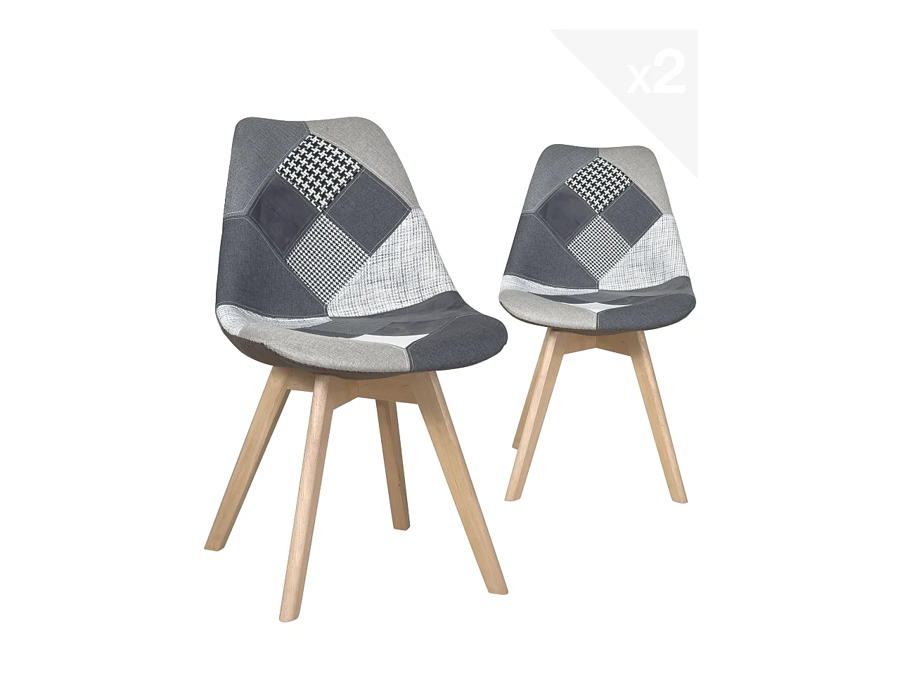 Lote 2 sillas Patchwork escandinavas tela patas de madera LAO (Gris)