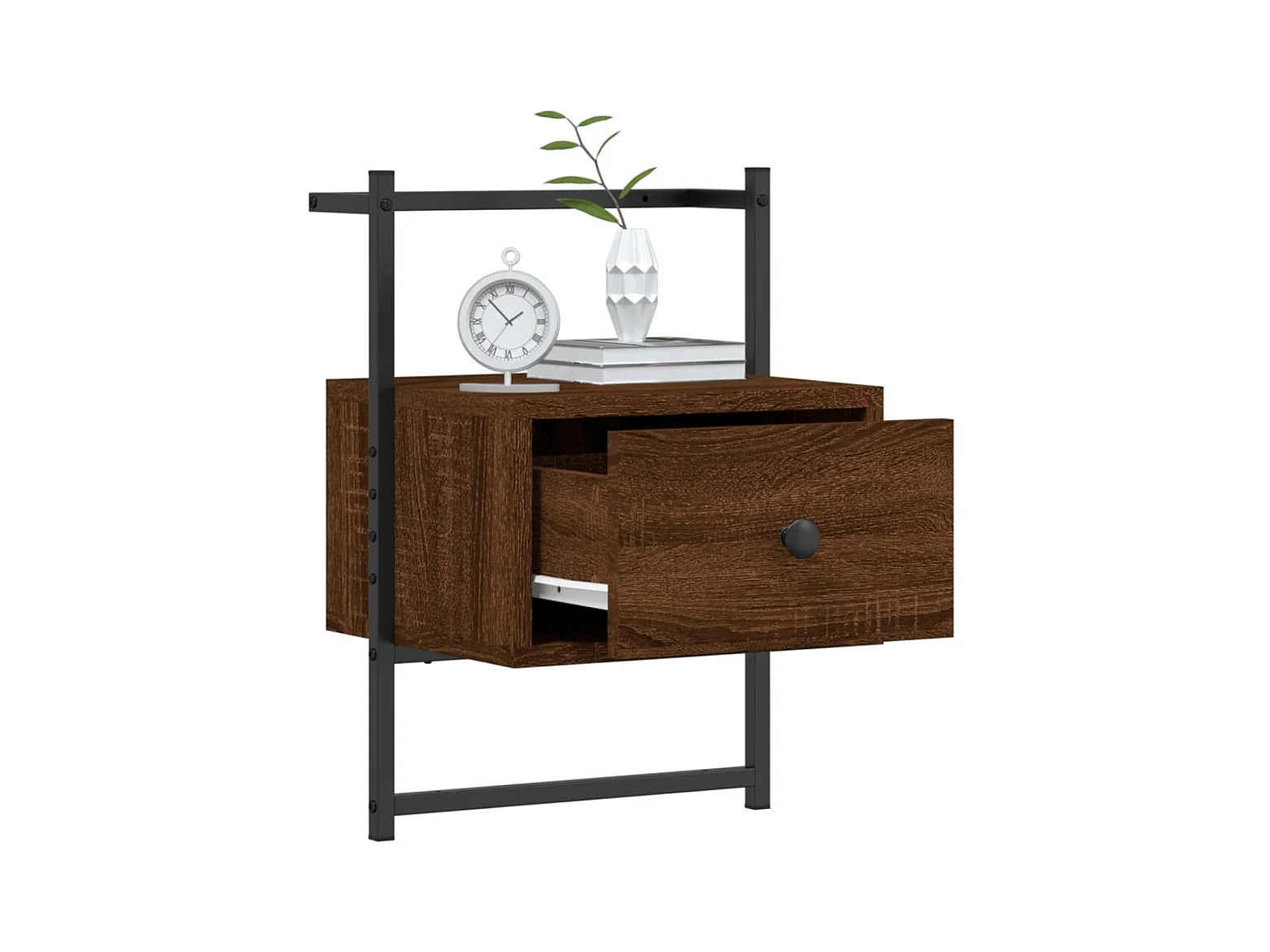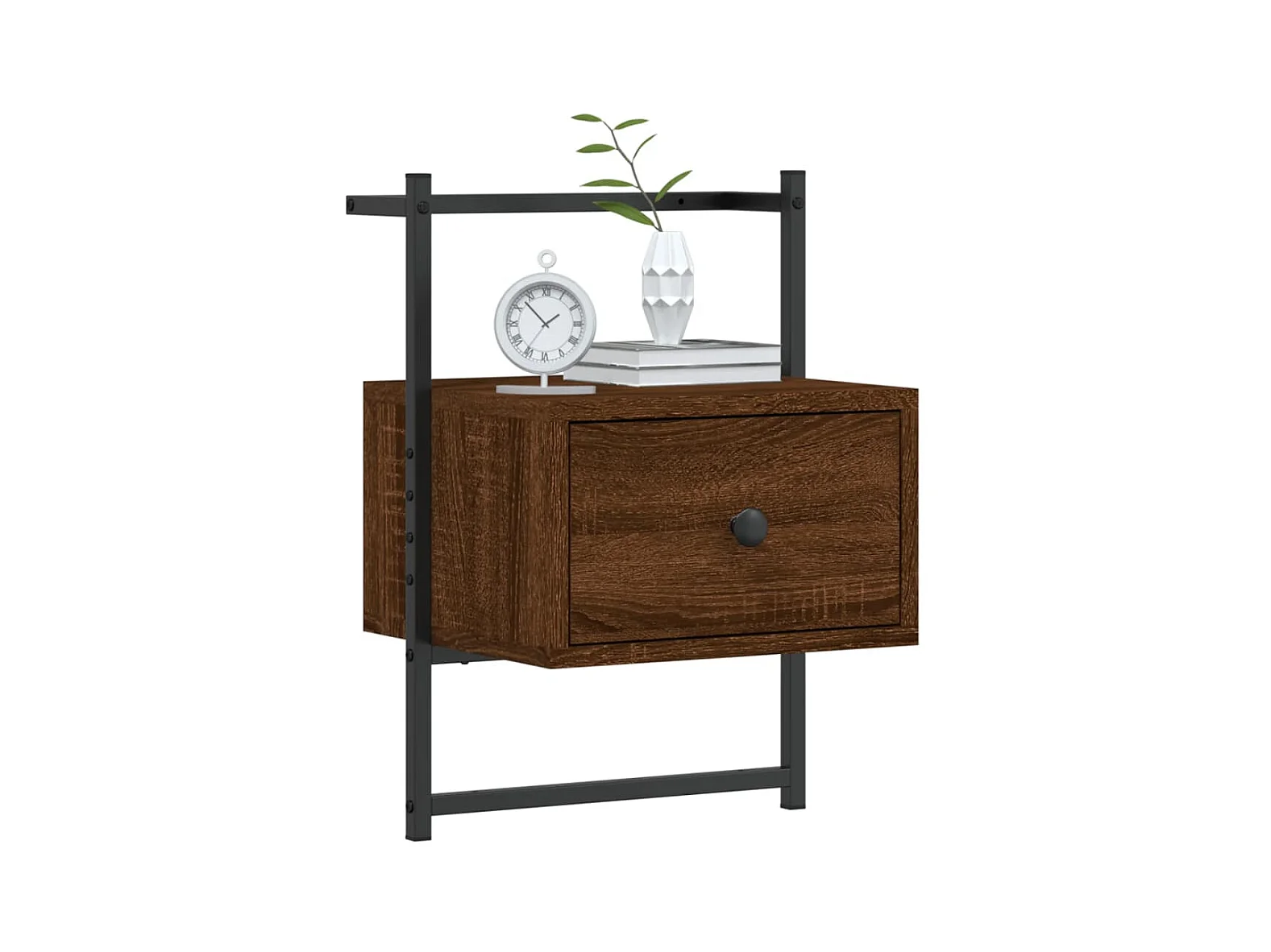 Mesita de noche de pared marrón roble 40x30x61 cm ES92997