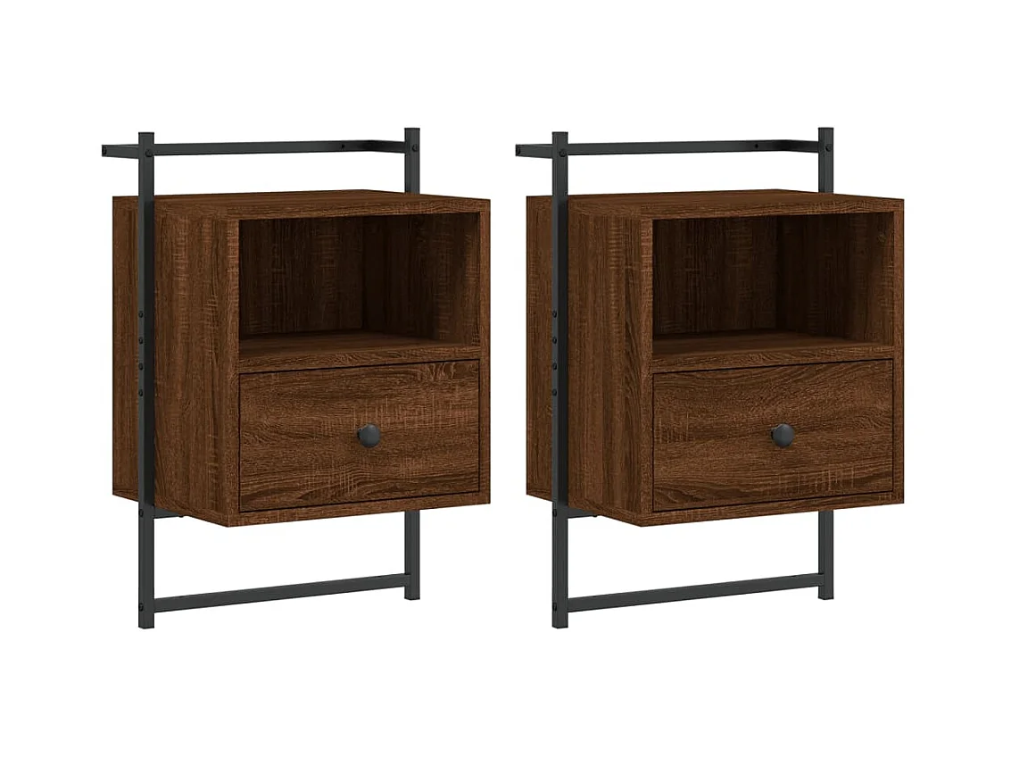 Lote de 2 Mesitas de noche de pared marrón roble 40x30x61 cm ES30979