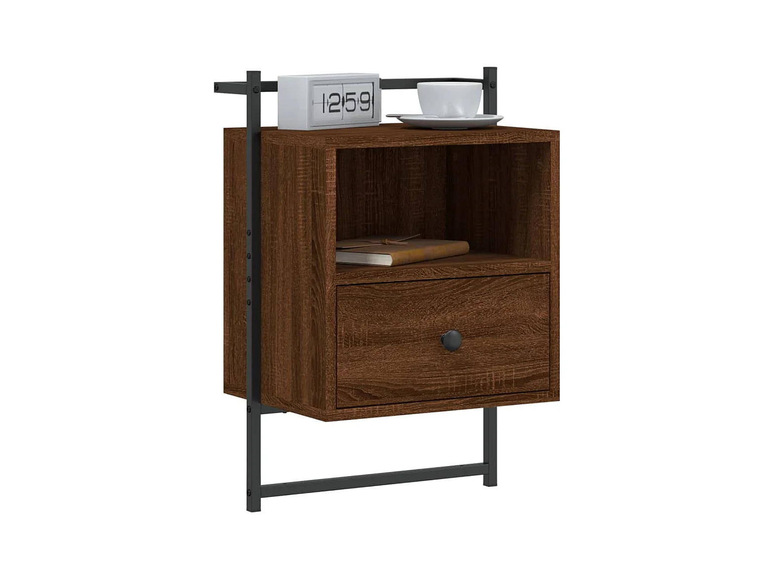 Mesita de noche de pared color roble ahumado 35x35x20 cm ES58702