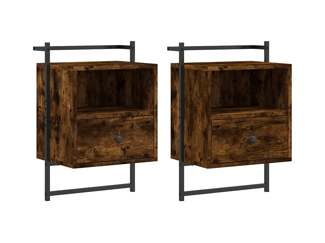 Lote de 2 Mesitas de noche de pared roble ahumado 40x30x61 cm ES88911
