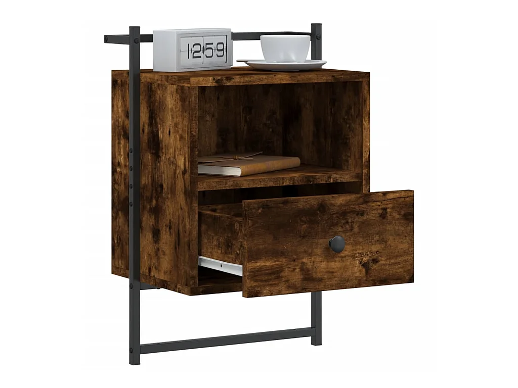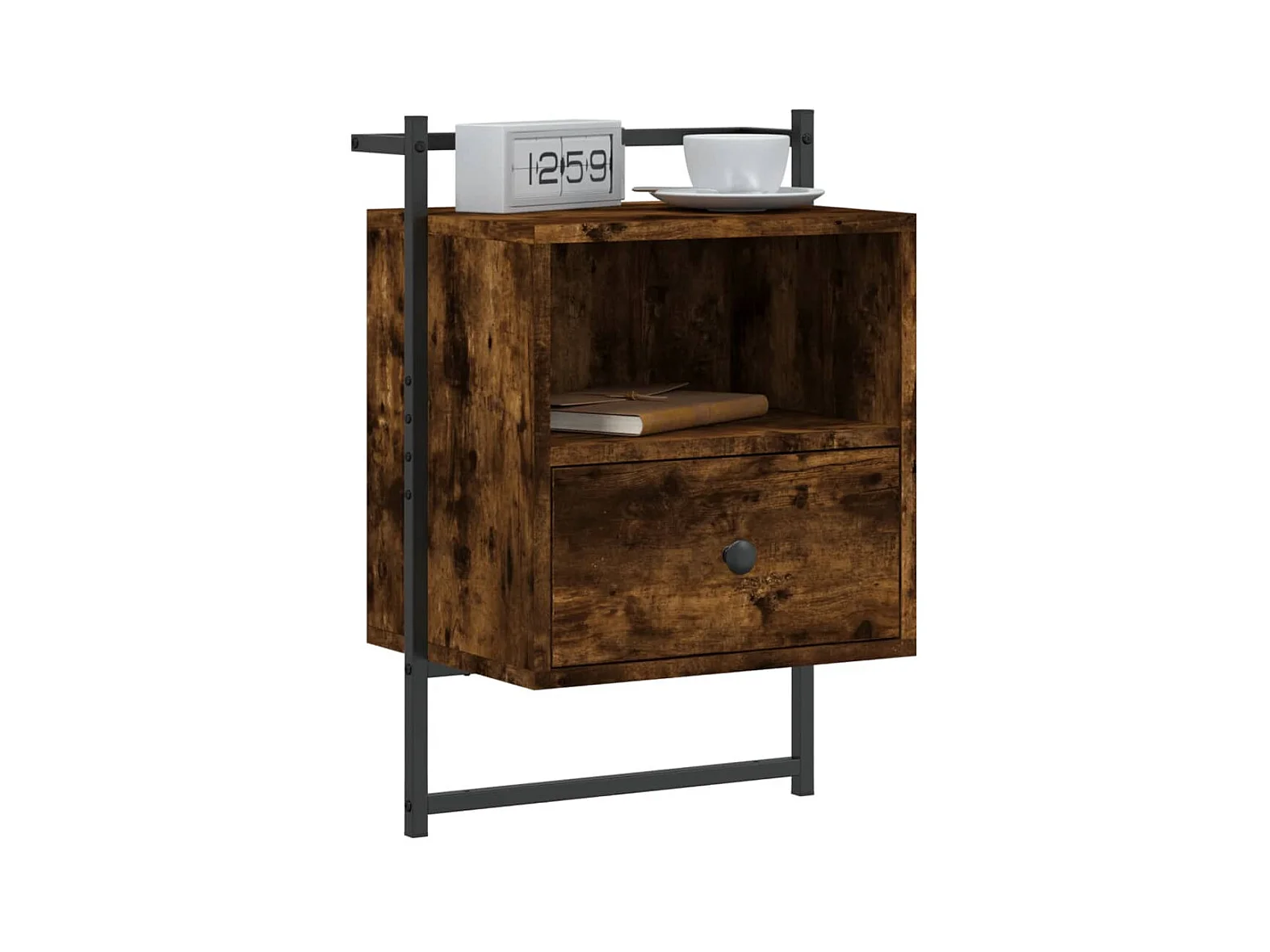 Mesita de noche de pared color roble ahumado 35x35x20 cm ES58702