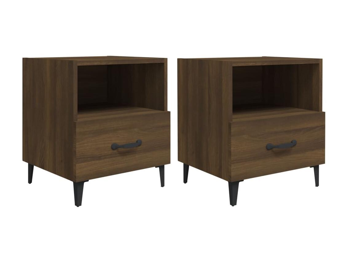 Lote de 2 Mesitas de noche madera ingeniería marrón roble 40x35x47,5 cm ES53445