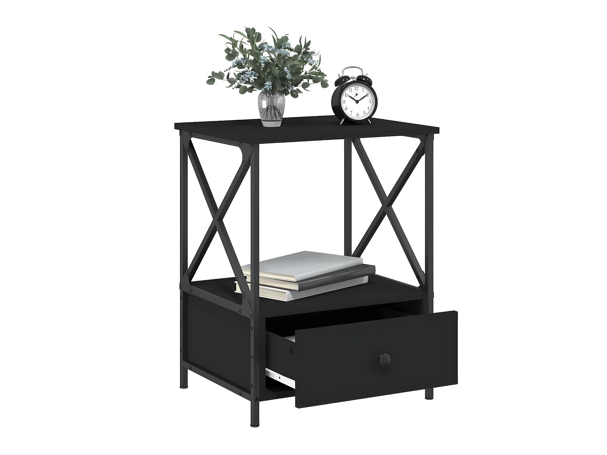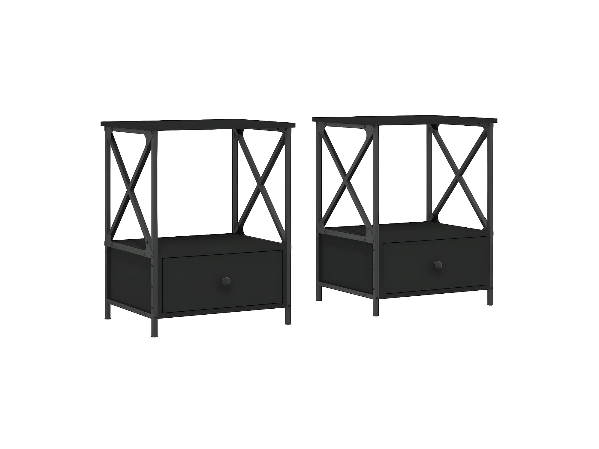 Lote de 2 Mesitas de noche madera de ingeniería negro 50x41x65 cm ES37797