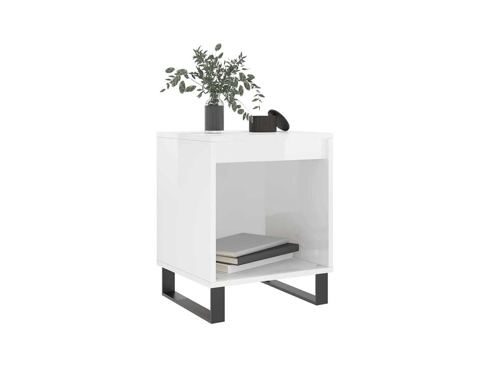 Lote de 2 Mesitas de noche madera ingeniería blanco brillo 40x35x50 cm ES85784