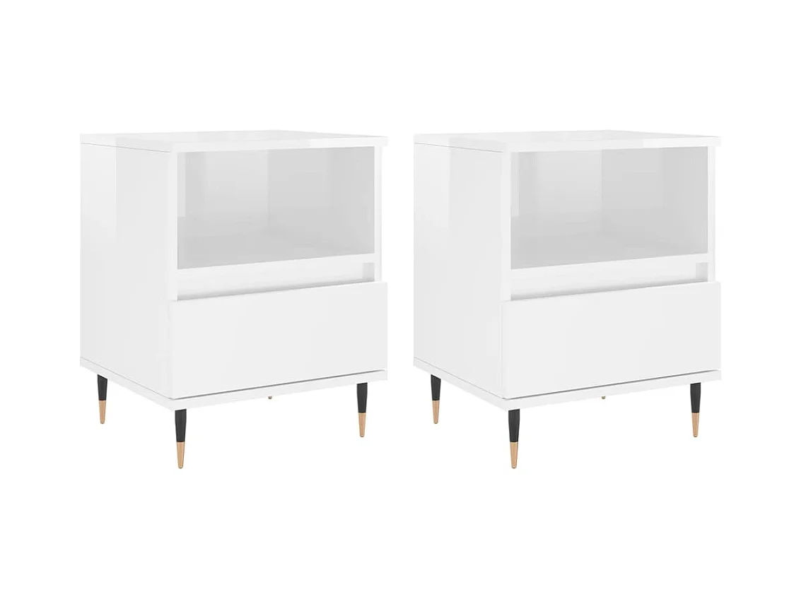 Lote de 2 Mesitas de noche madera ingeniería blanco brillo 40x35x50 cm ES69735