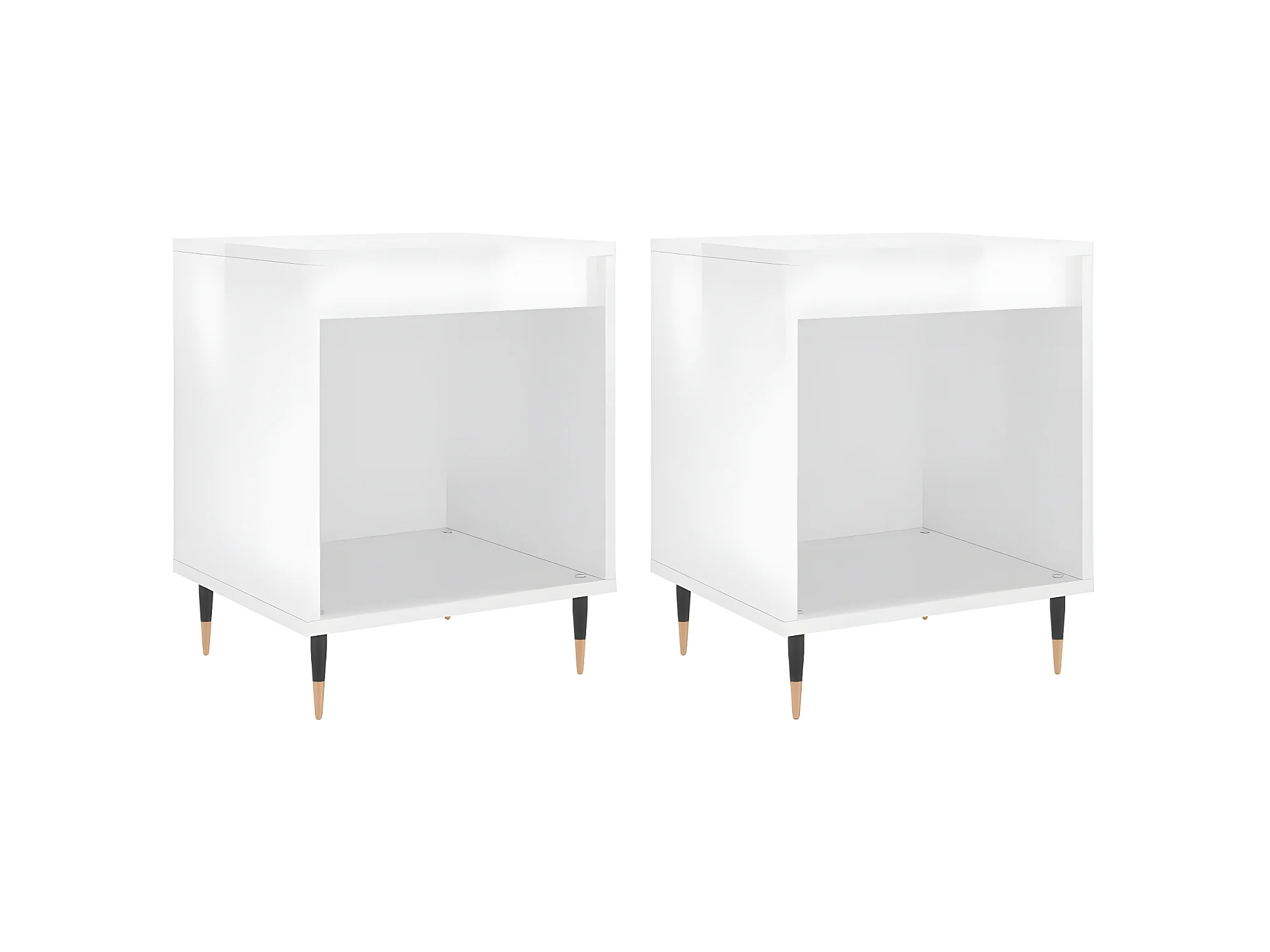 Lote de 2 Mesitas de noche madera ingeniería blanco brillo 40x35x50 cm ES85784