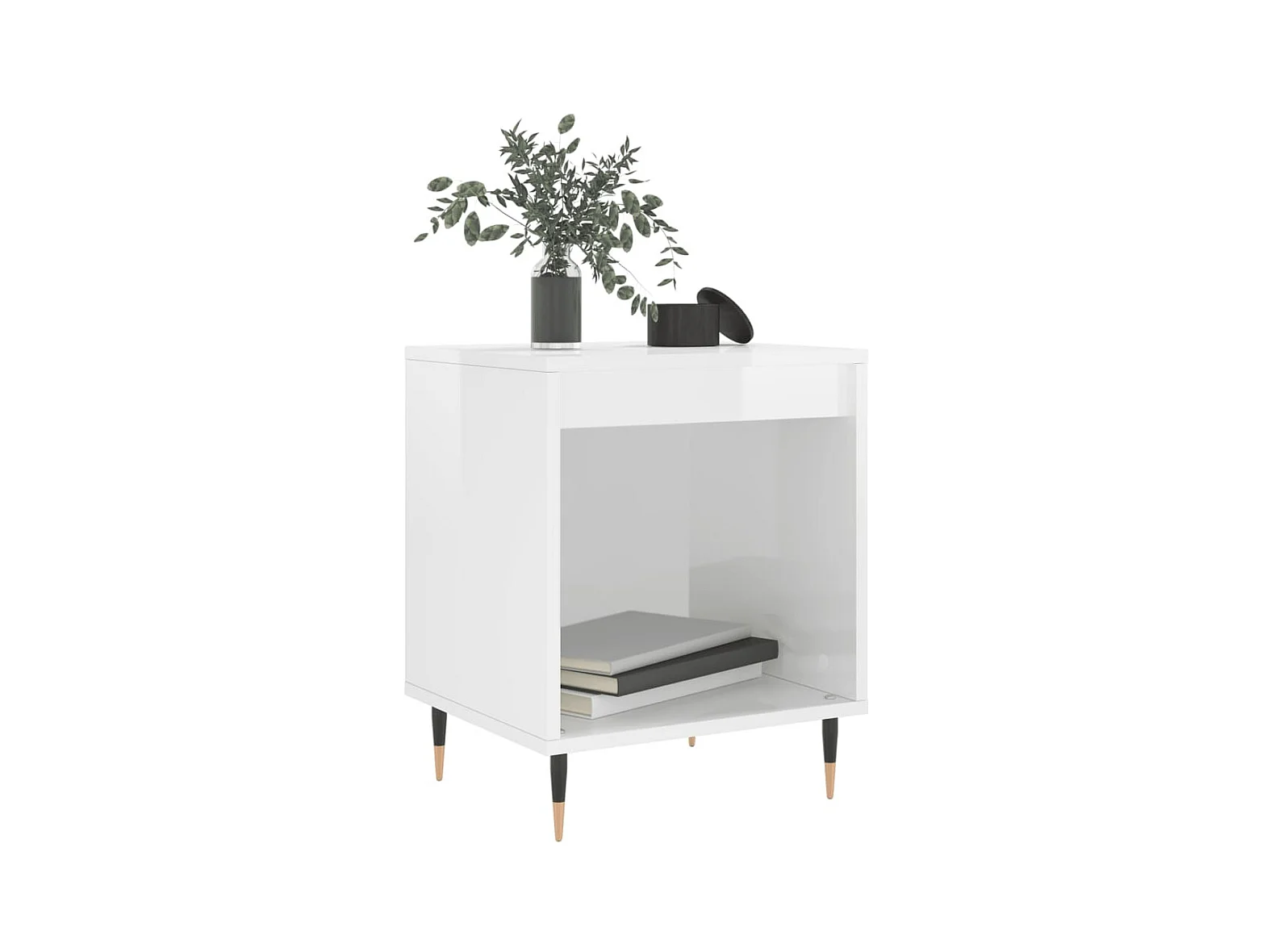 Lote de 2 Mesitas de noche madera ingeniería blanco brillo 40x35x50 cm ES64591