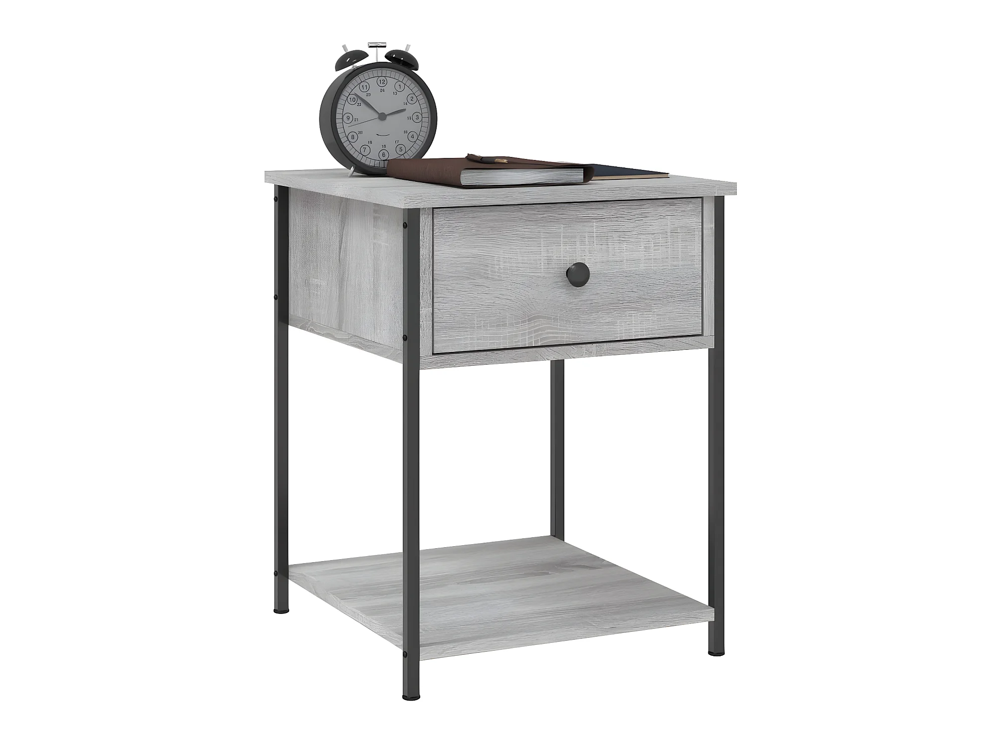 Mesita de noche madera contrachapada gris hormigón 41x40x36 cm ES71858