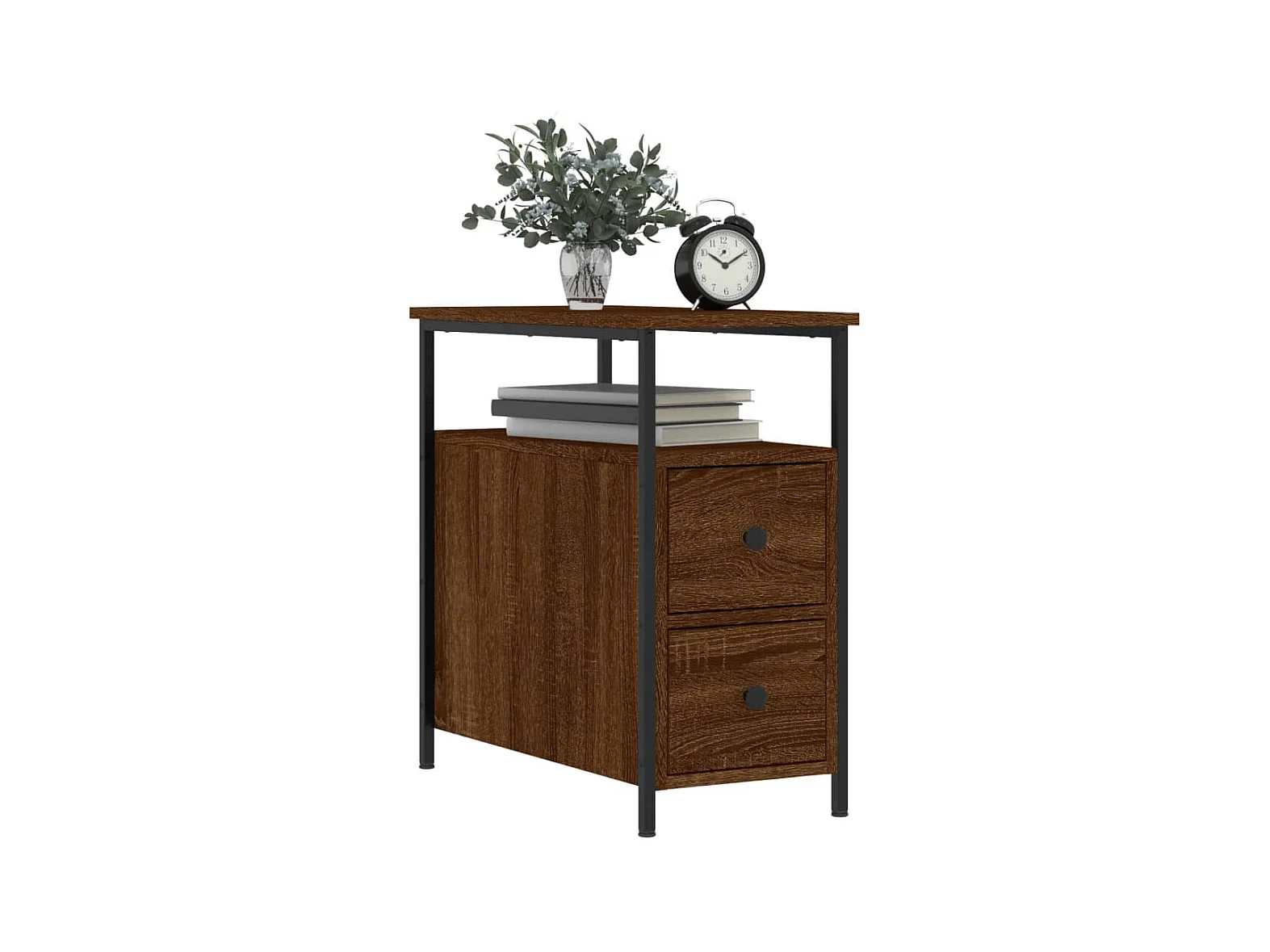 Mesita de noche madera de ingeniería marrón roble 30x60x60 cm ES84117