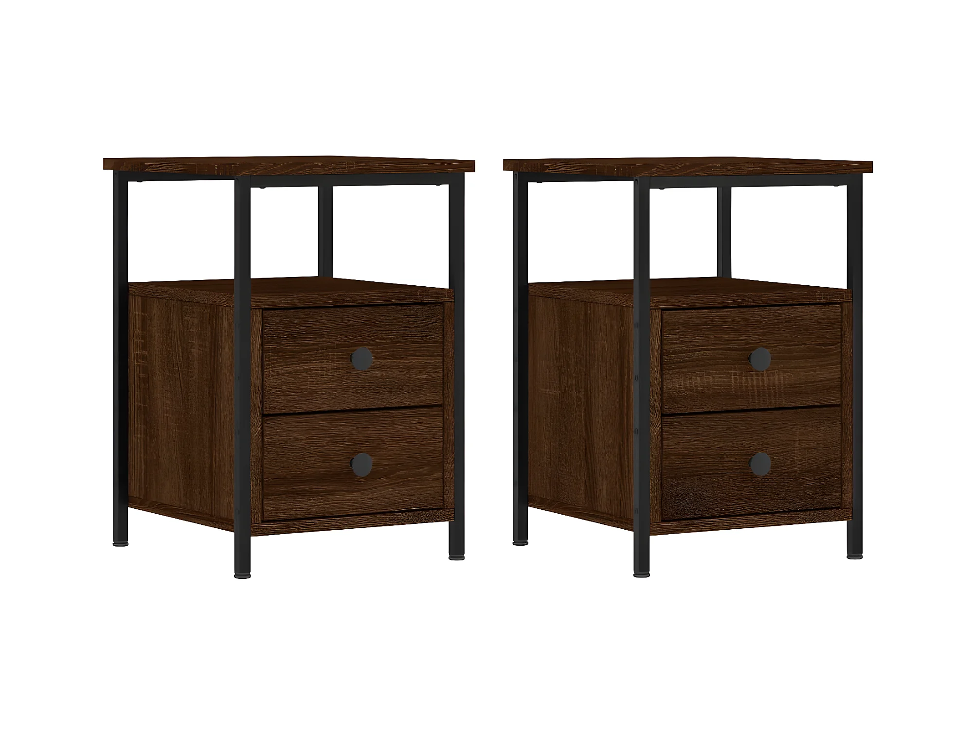 Lote de 2 Mesitas de noche madera ingeniería roble ahumado 34x35,5x50cm ES99940