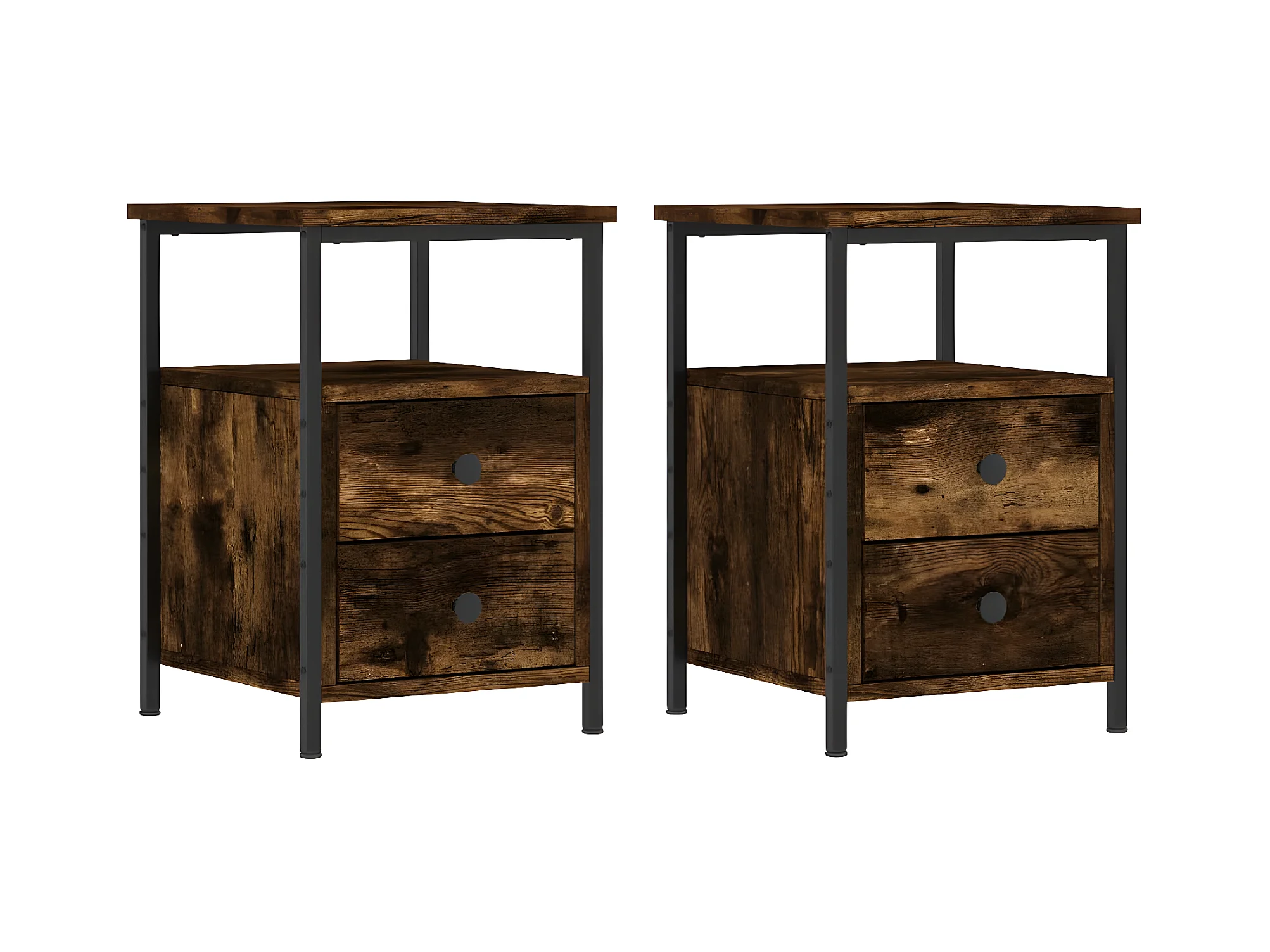 Lote de 2 Mesitas de noche madera ingeniería roble ahumado 34x35,5x50cm ES99940