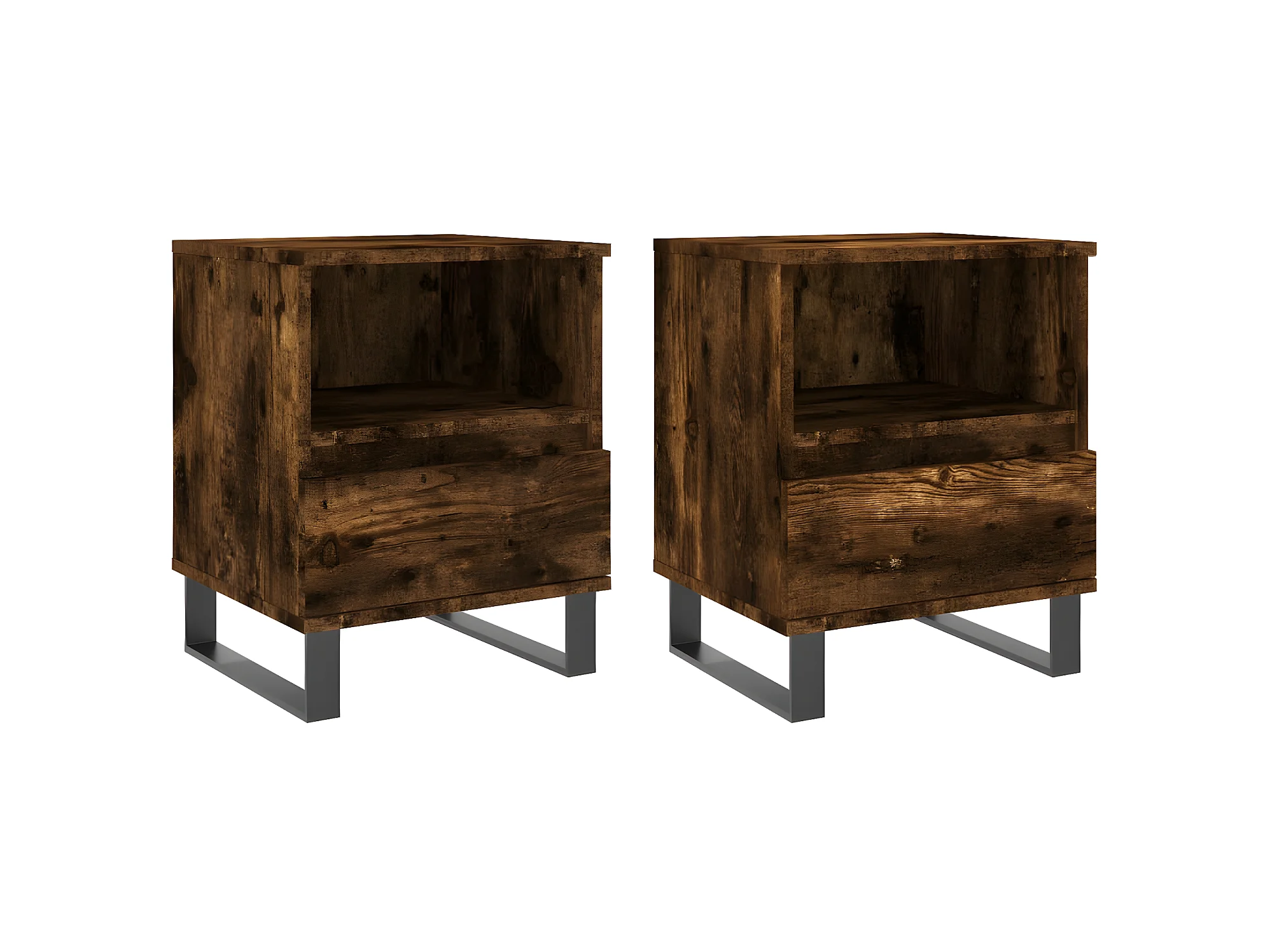 Lote de 2 Mesitas de noche madera ingeniería roble ahumado 40x35x50 cm ES97000
