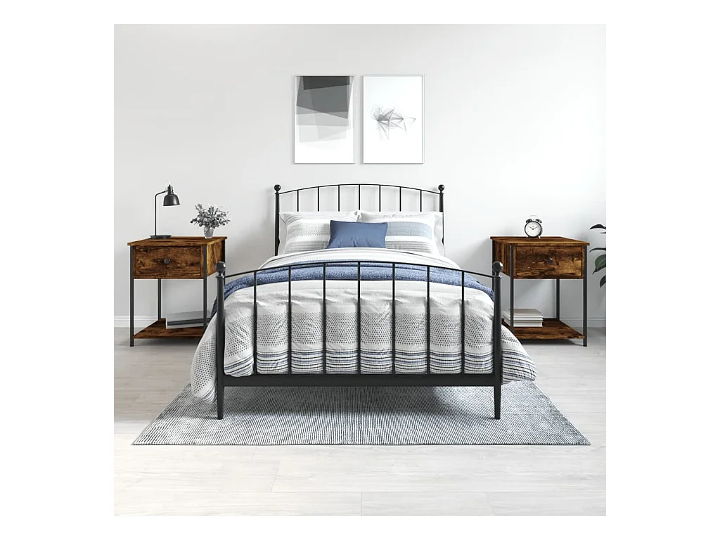Lote de 2 Mesitas de noche madera ingeniería roble ahumado 44x45x60 cm ES49285