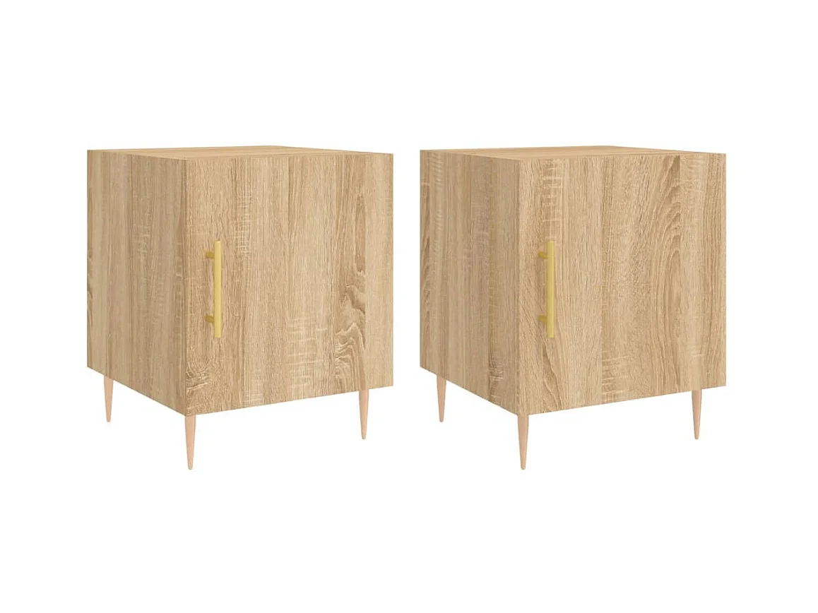 Lote de 2 Mesitas de noche madera ingeniería roble Sonoma 40x40x50 cm ES48172