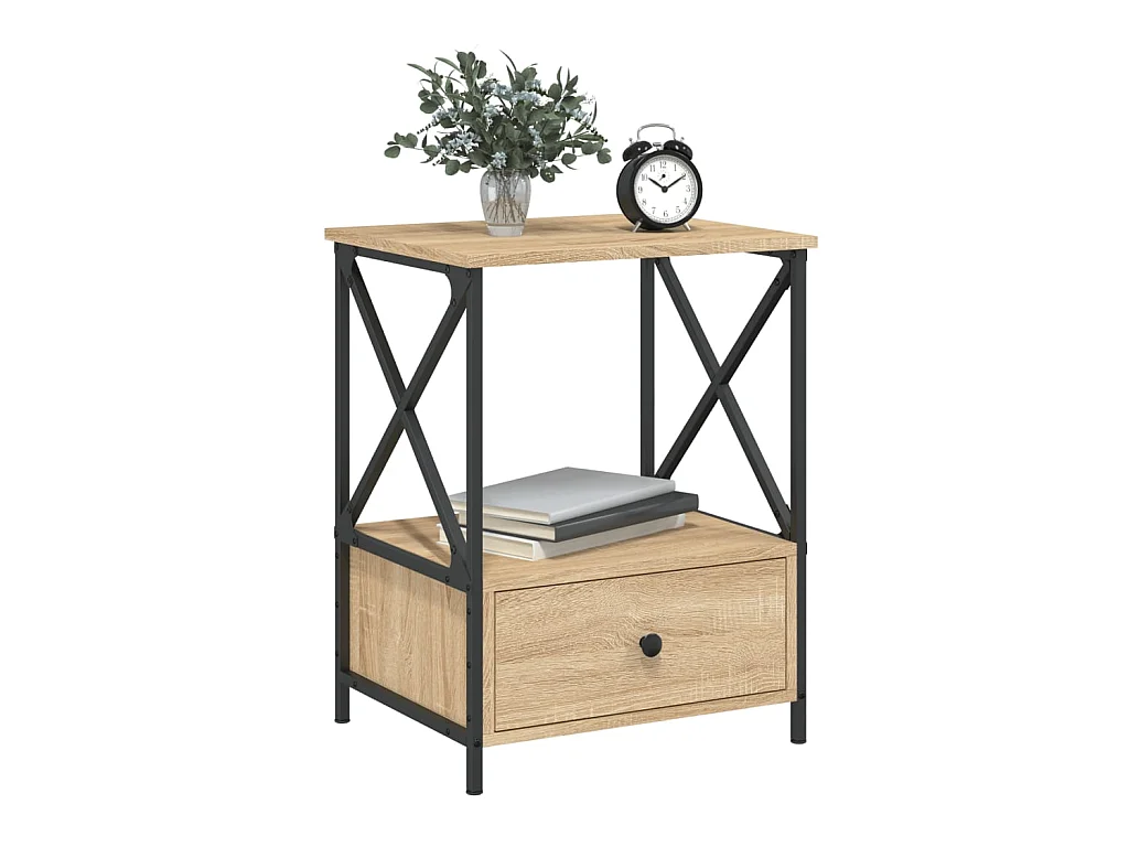 Lote de 2 Mesitas de noche madera ingeniería roble Sonoma 50x41x65 cm ES62522