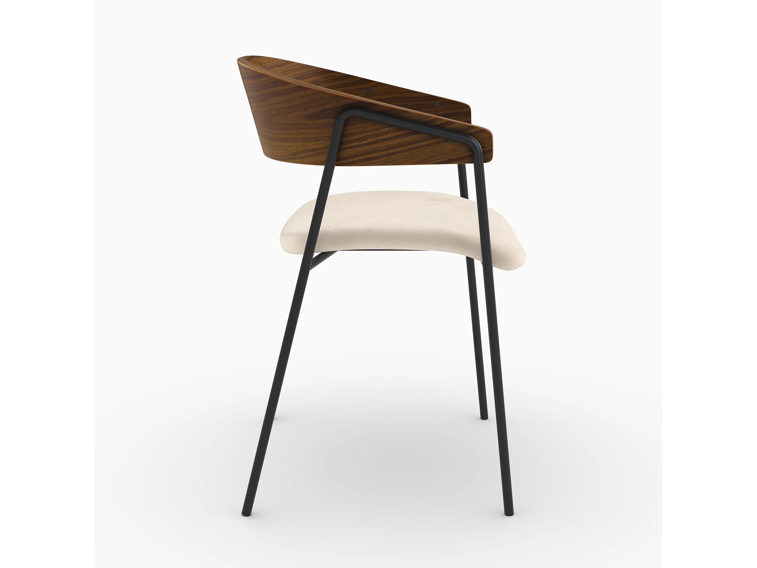 Lote de 2 sillas de terciopelo blanco roto y madera de nogal - Esmée