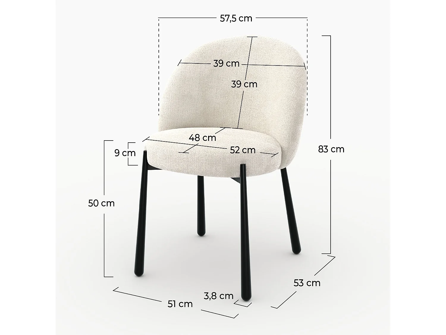 Lote de 2 sillas de terciopelo crudo y metal negro - Pulpy