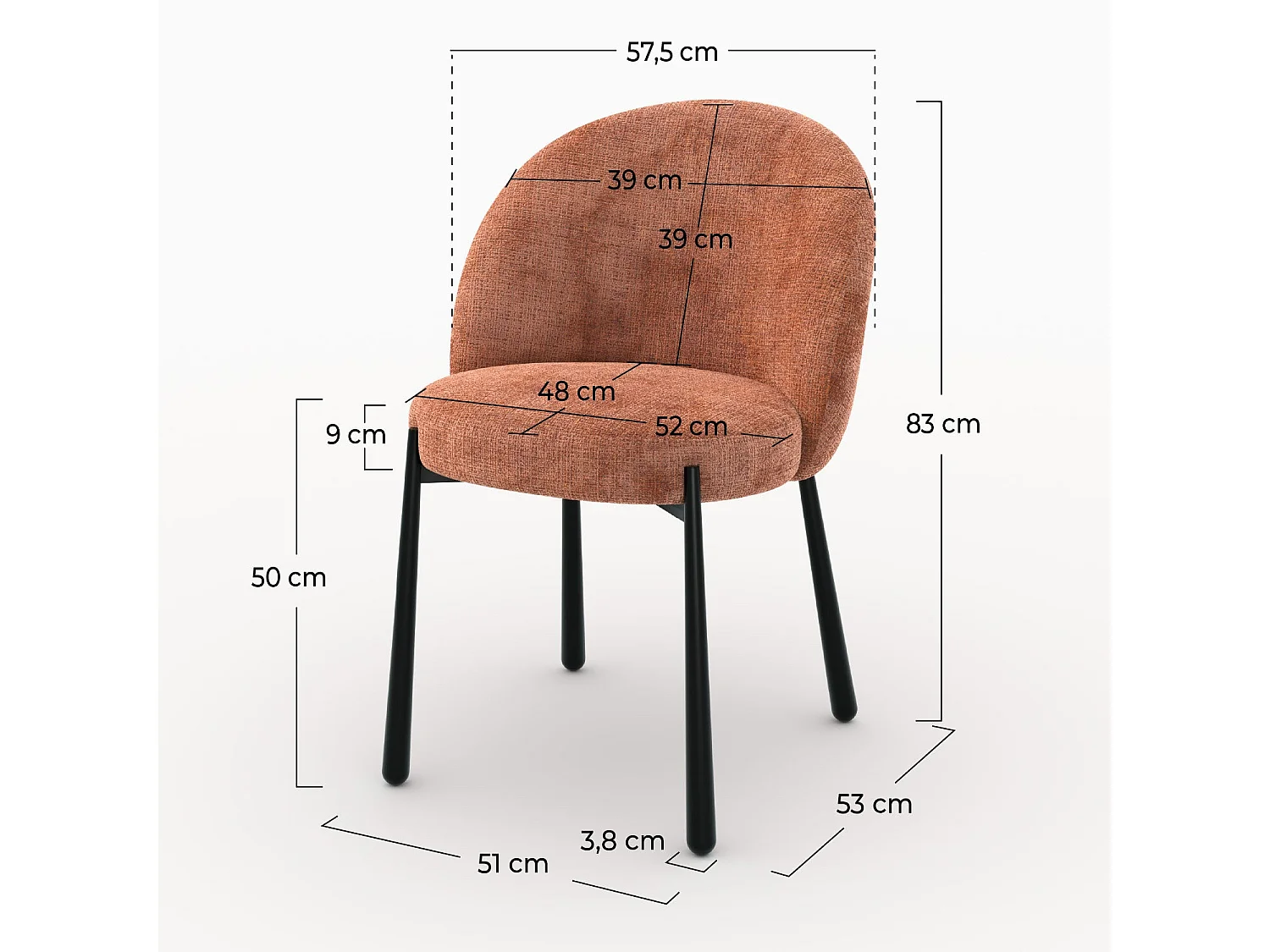Lote de 2 sillas de terciopelo terracota y metal negro - Pulpy