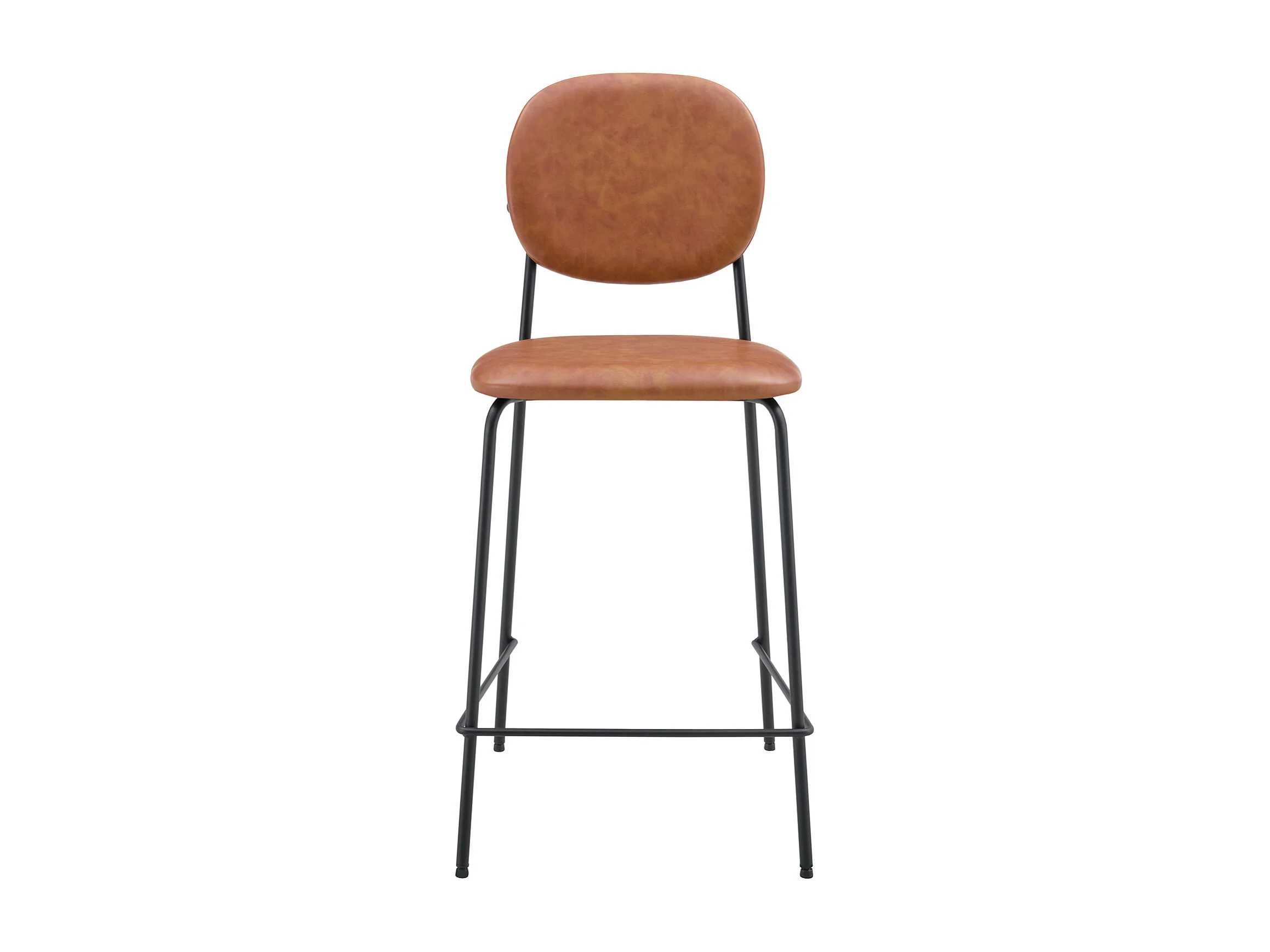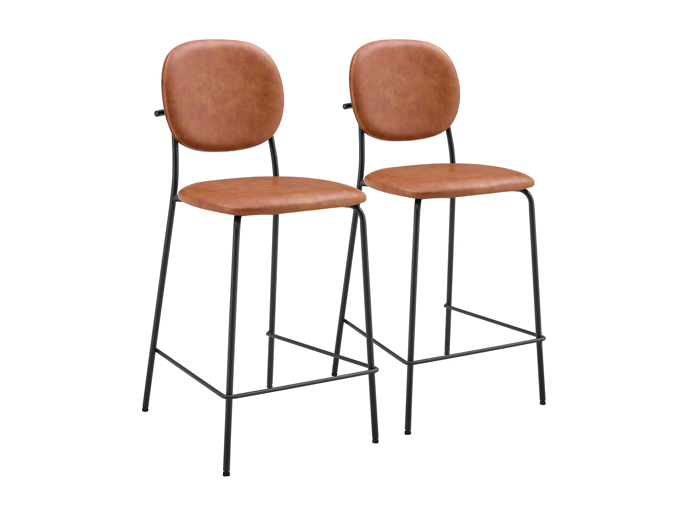 Lote de 2 taburetes de bar EDMOND de polipiel color coñac - HAPPY GARDEN