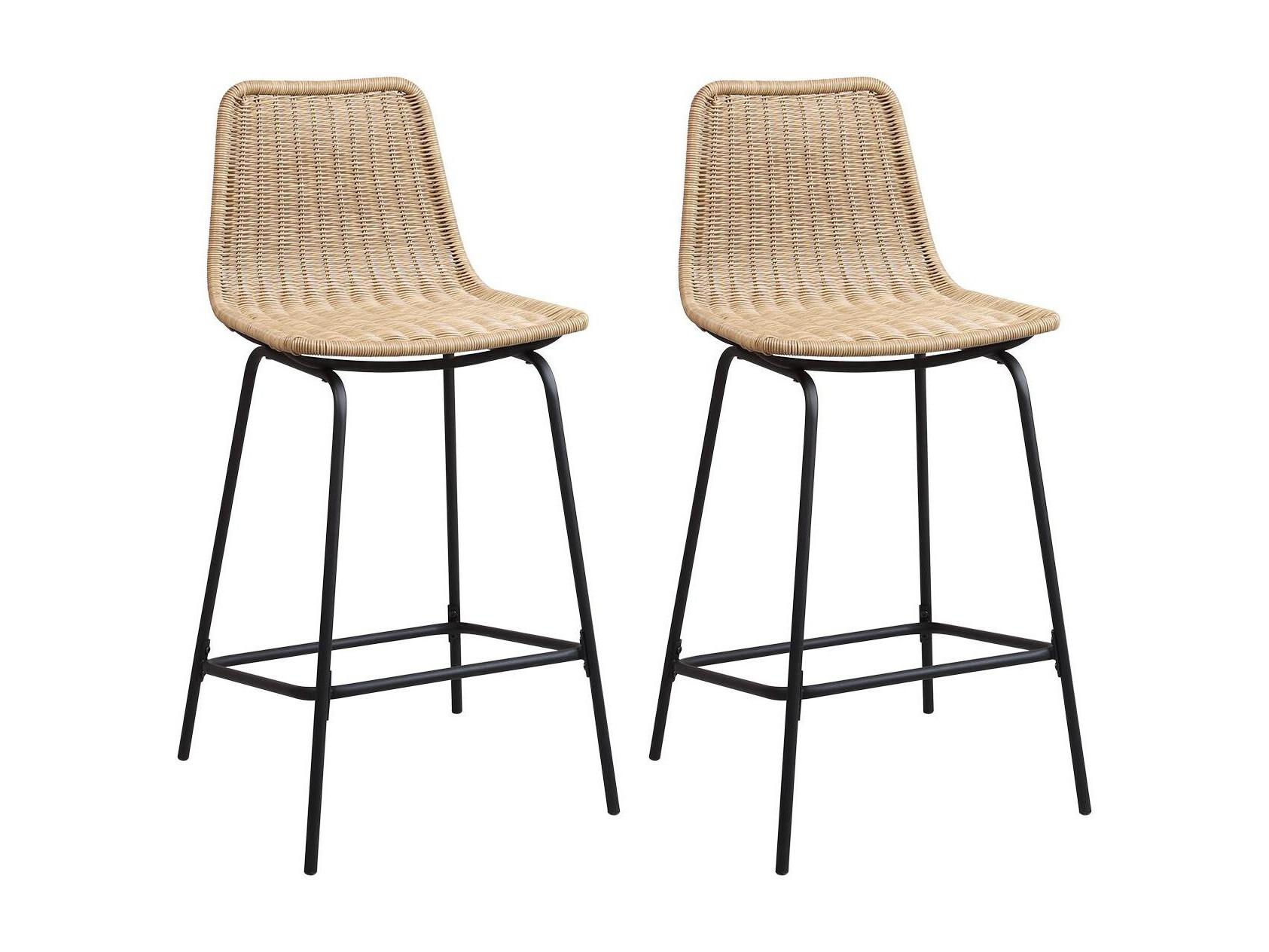 Conjunto taburetes de bar BALI de metal de 65 cm con asiento de ratán