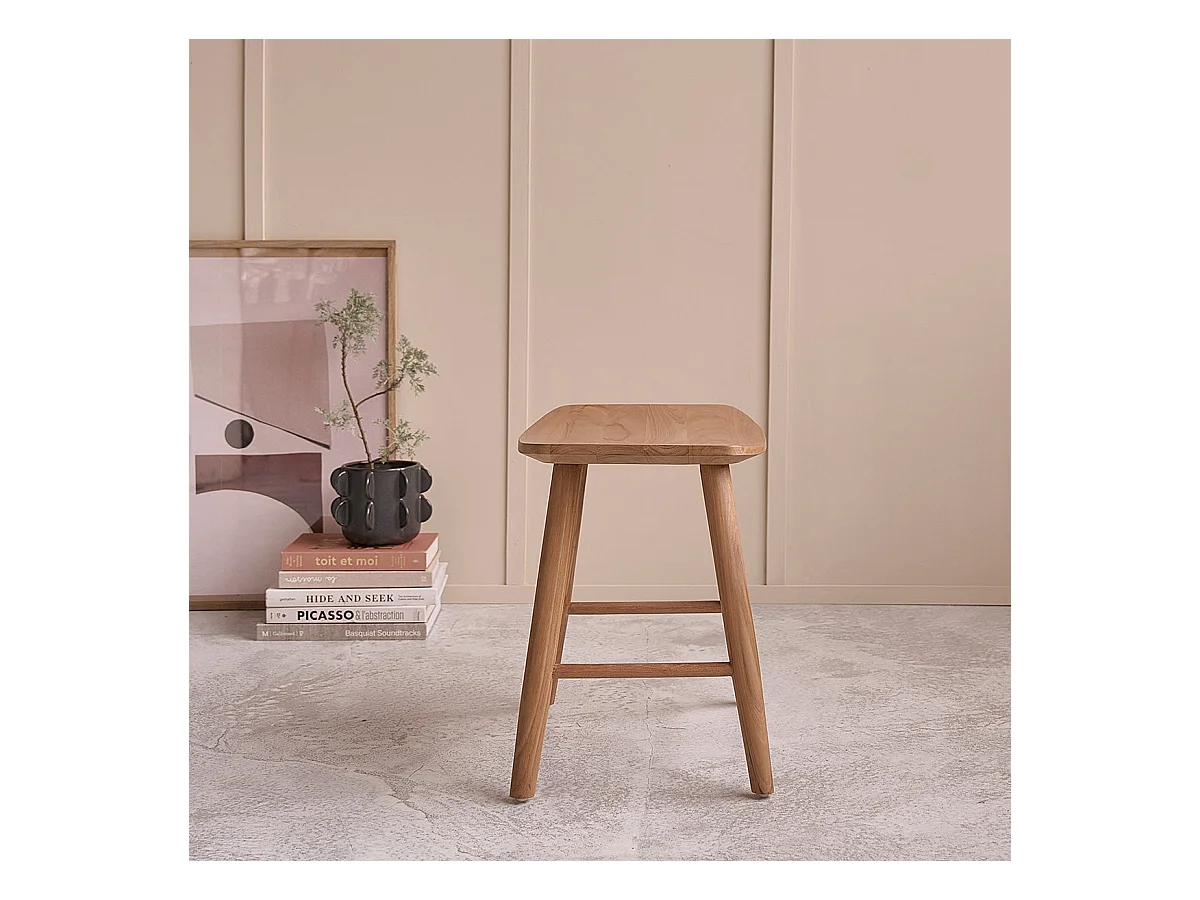 Lote de 2 taburetes de teca maciza 45 cm