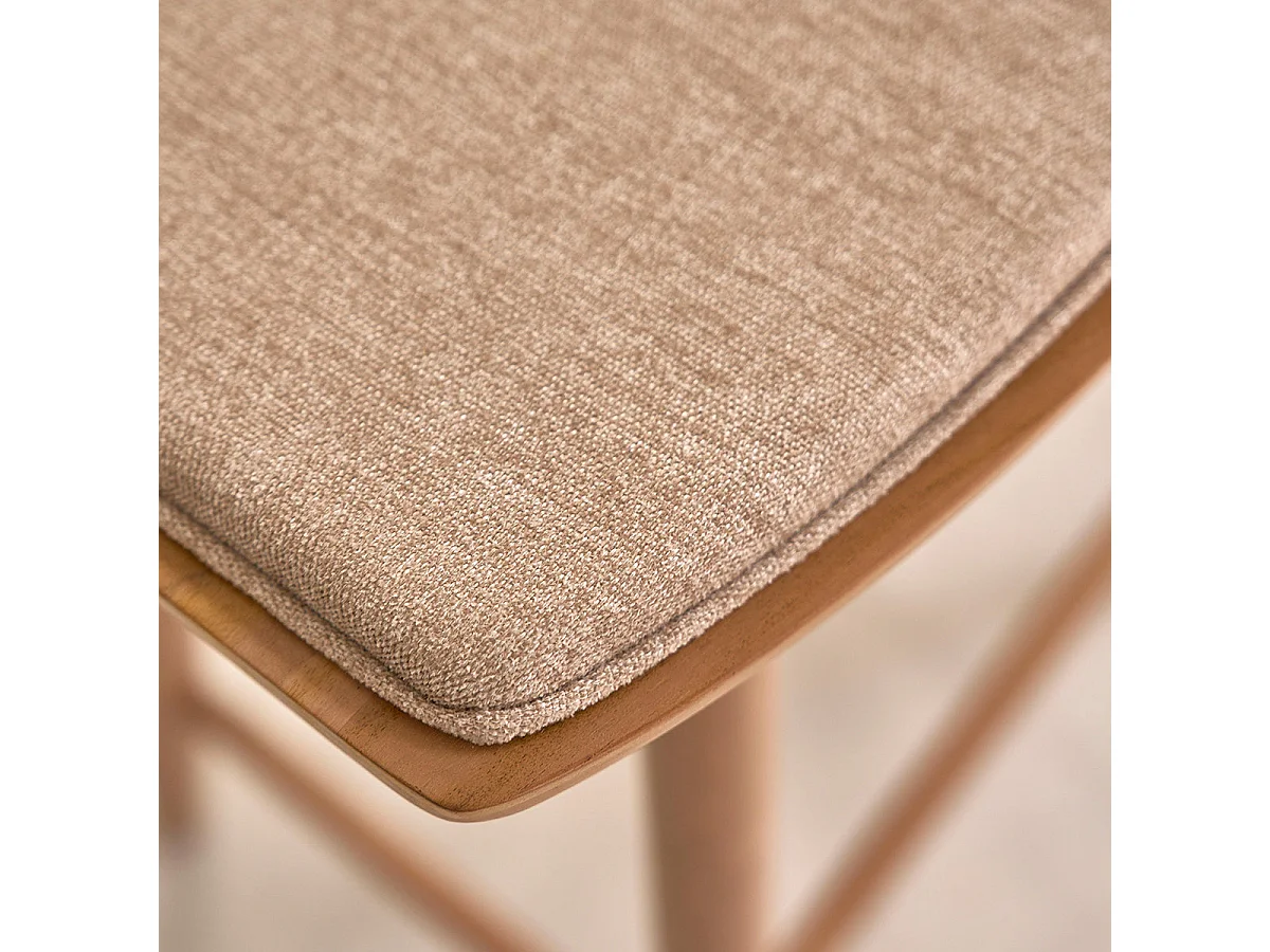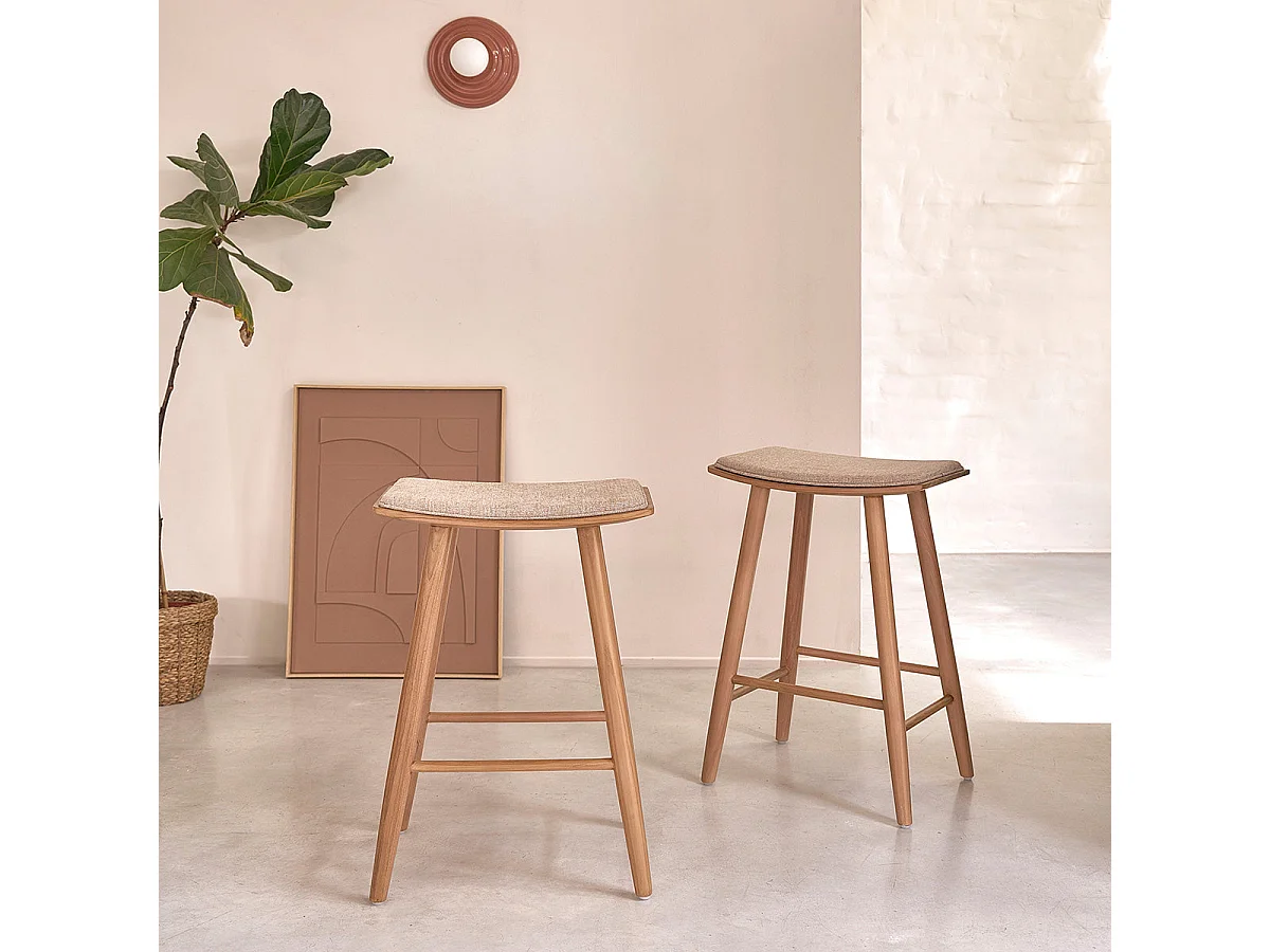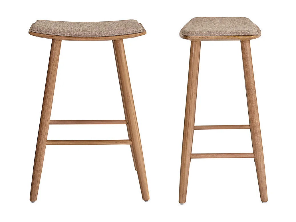 Lote de 2 taburetes de teca maciza y terciopelo color crudo 65 cm