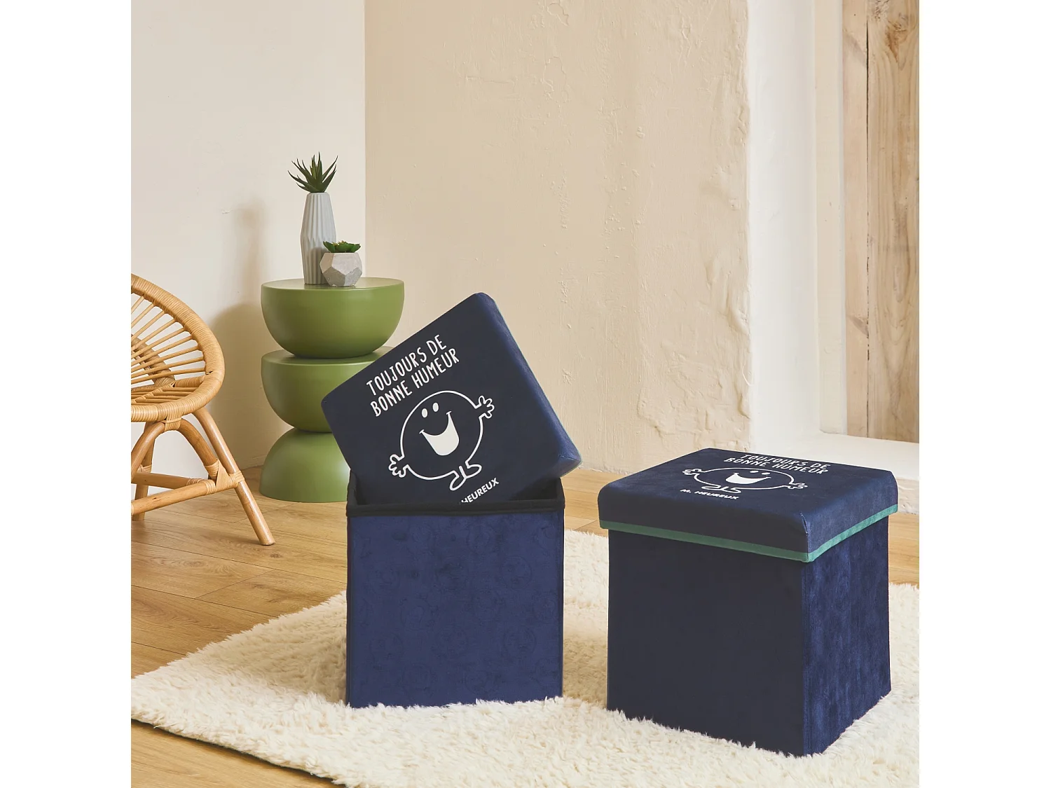 Lote de 2 taburetes infantiles - mr. Feliz azul marino