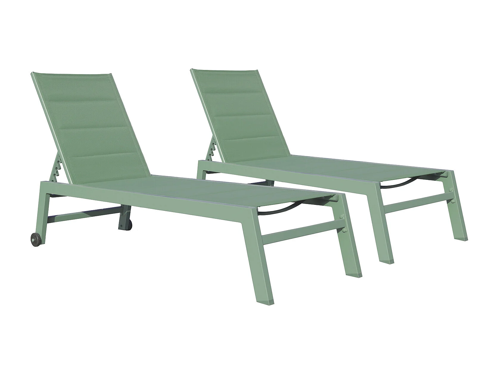 Pack de 2 tumbonas BARBADOS de textileno verde salvia aluminio verde salvia - HAPPY GARDEN