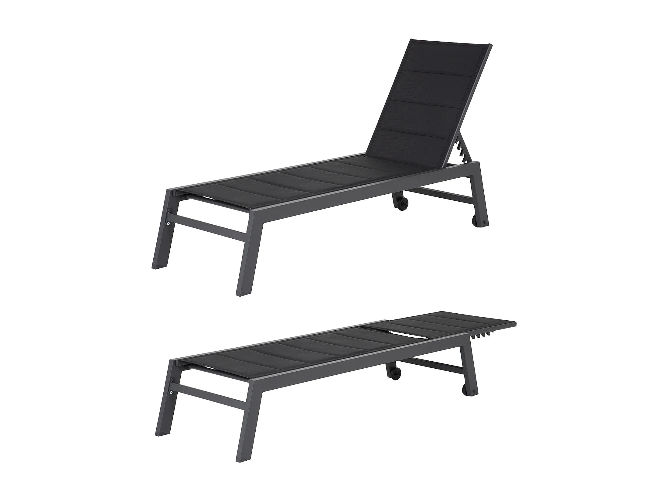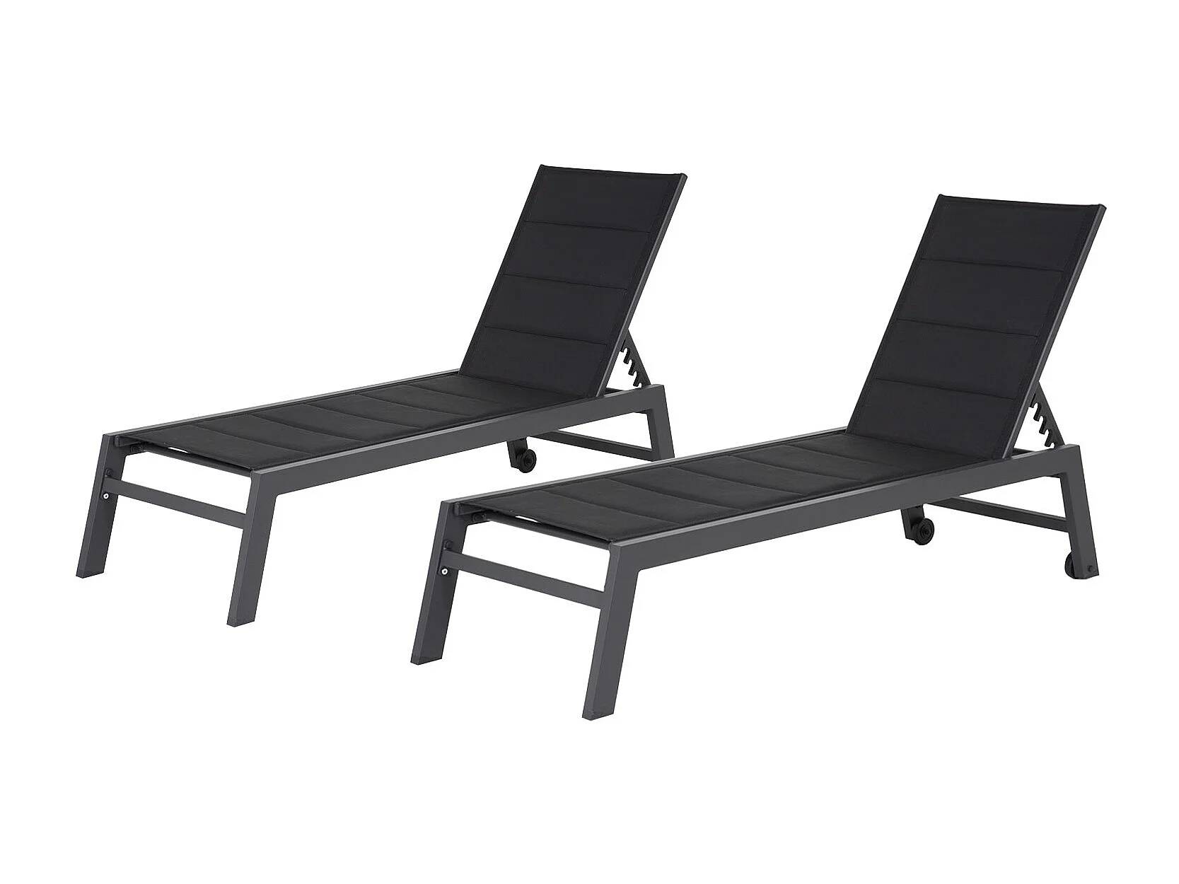 Lote de 2 tumbonas BARBADOS en textileno color negro aluminio gris antracita