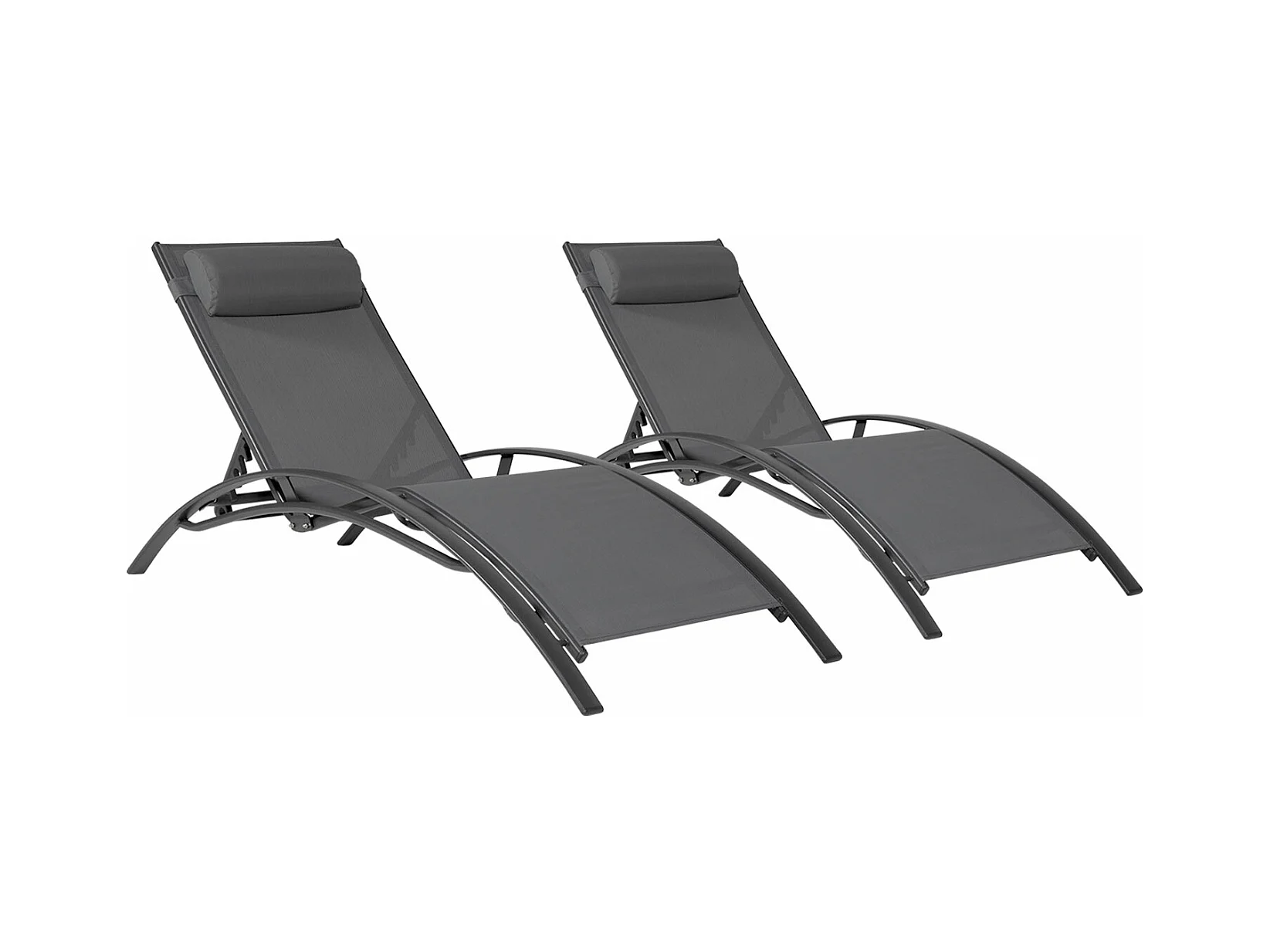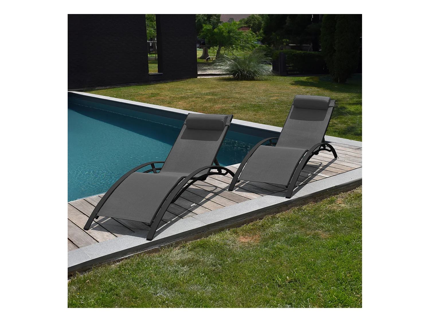 Lote de 2 tumbonas GALAPAGOS en textileno gris aluminio gris antracita
